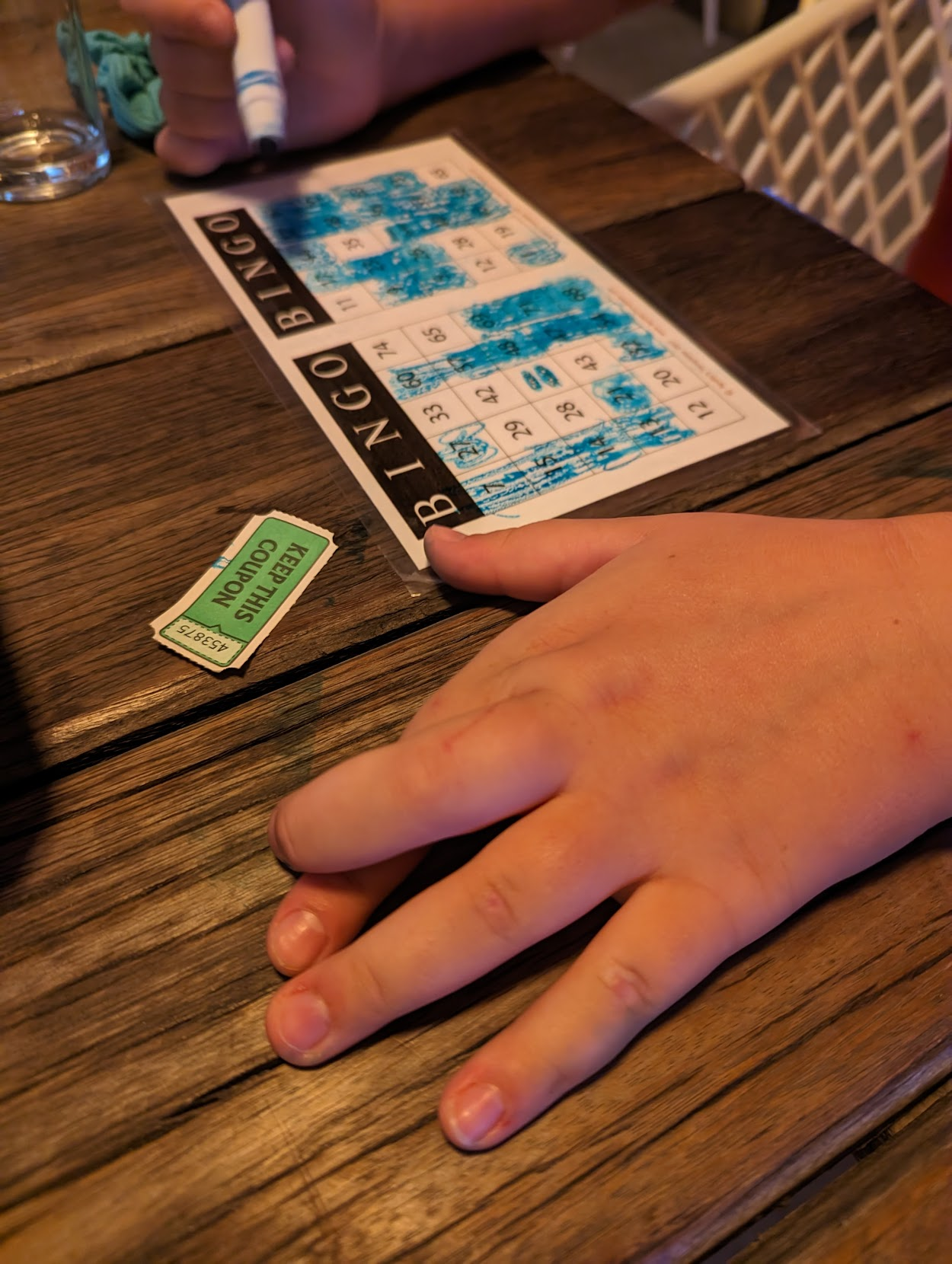 There was no way we could pass that up! Emma played every game with her fingers crossed. She did end up with a bingo and won a free pizza!