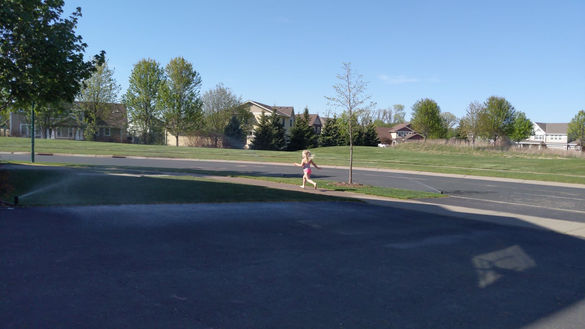 This afternoon we turned our sprinklers back on. The girls were super excited.