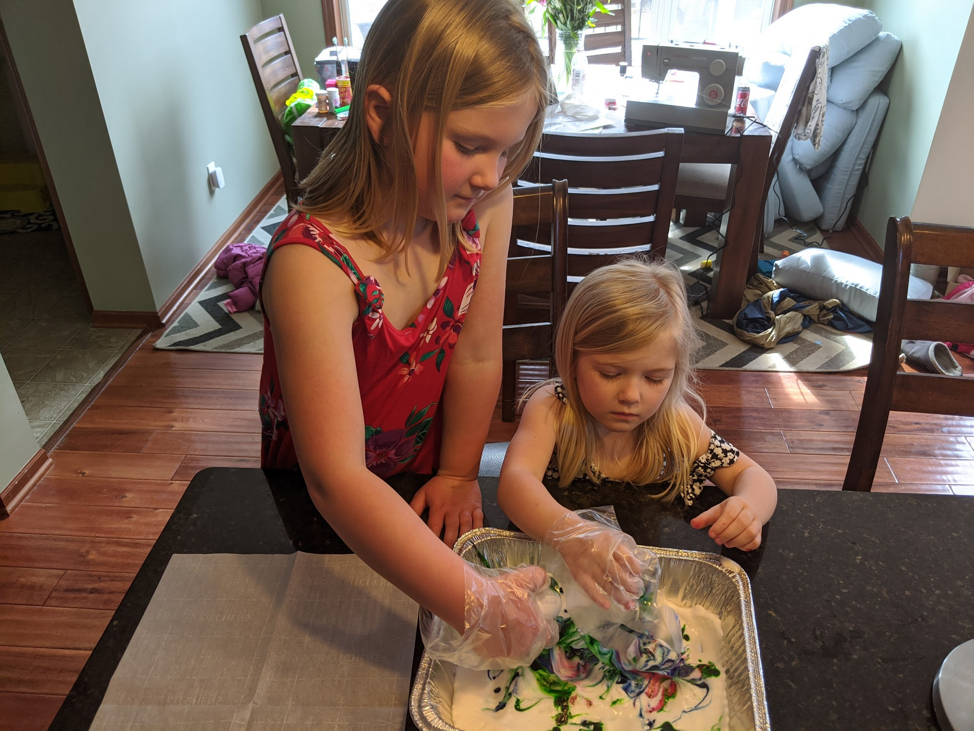 After school was done we dyed Easter eggs. (Ignore the massive mess in the background!) This year we tried a kit that came with foam that you rolled the eggs around in. It seemed like a huge mess in the beginning, but the eggs came out really cool. We even ended up putting some in the foam after we dyed them the old fashioned way.