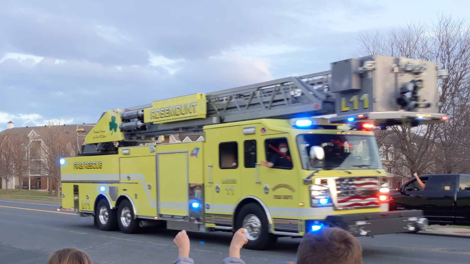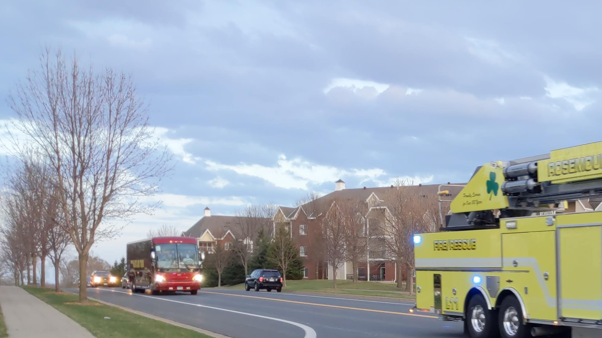 They are playing in the state tournament for the first time since 1988. Tonight was the semifinal game and they got a firetruck escort on their way out of town.