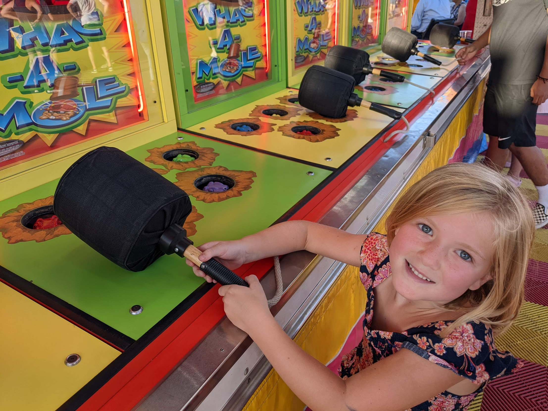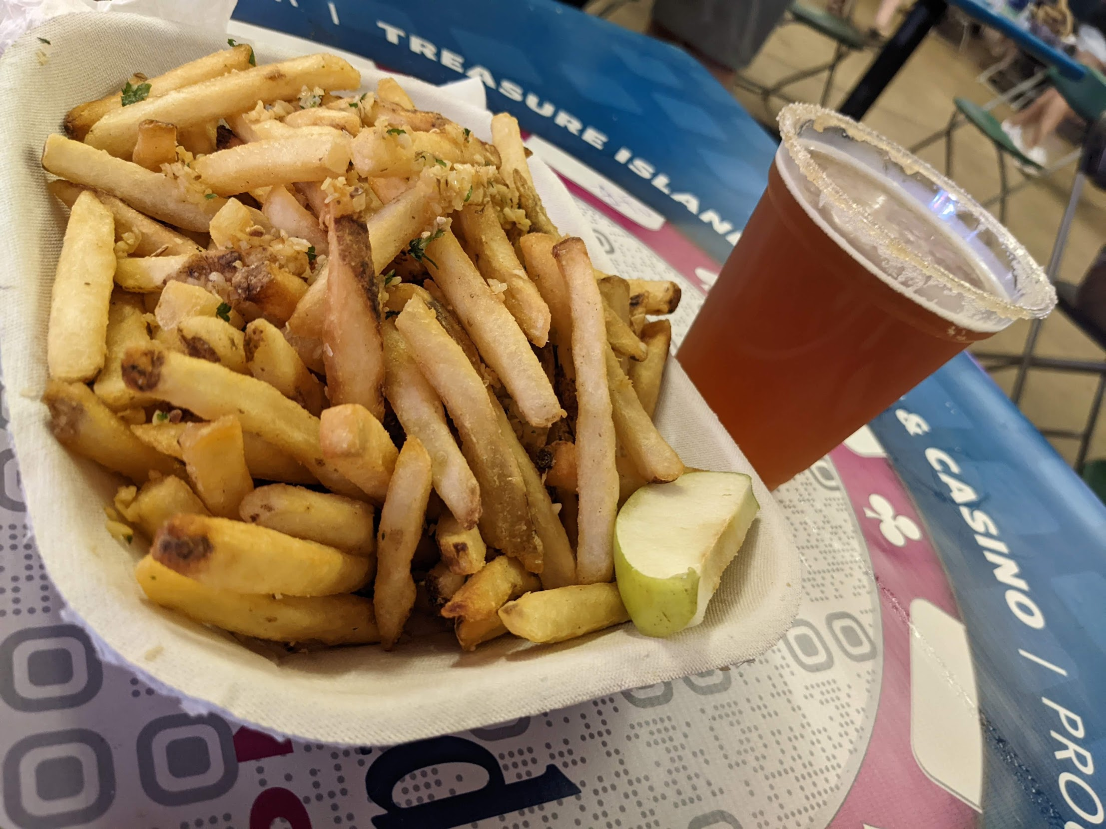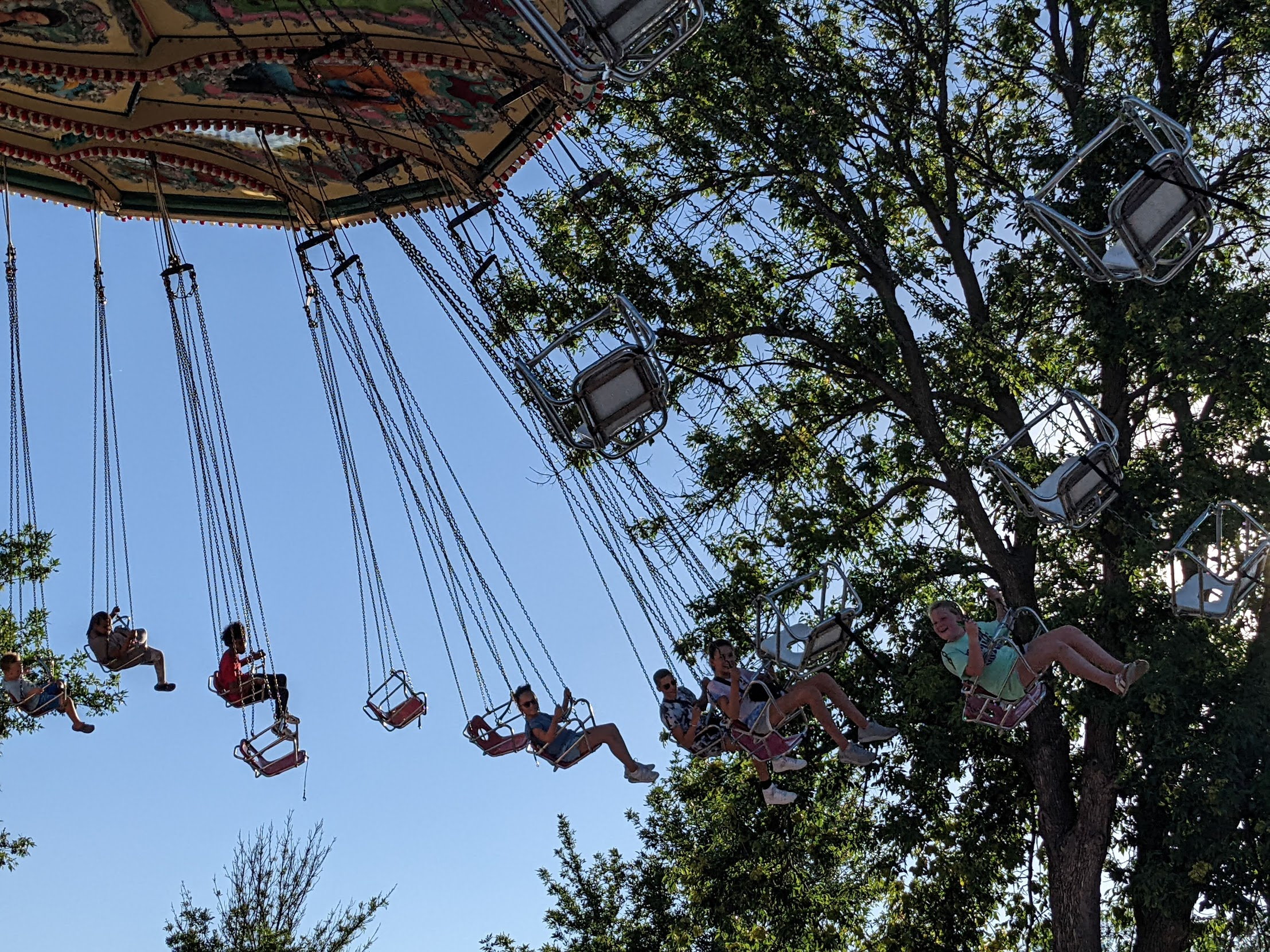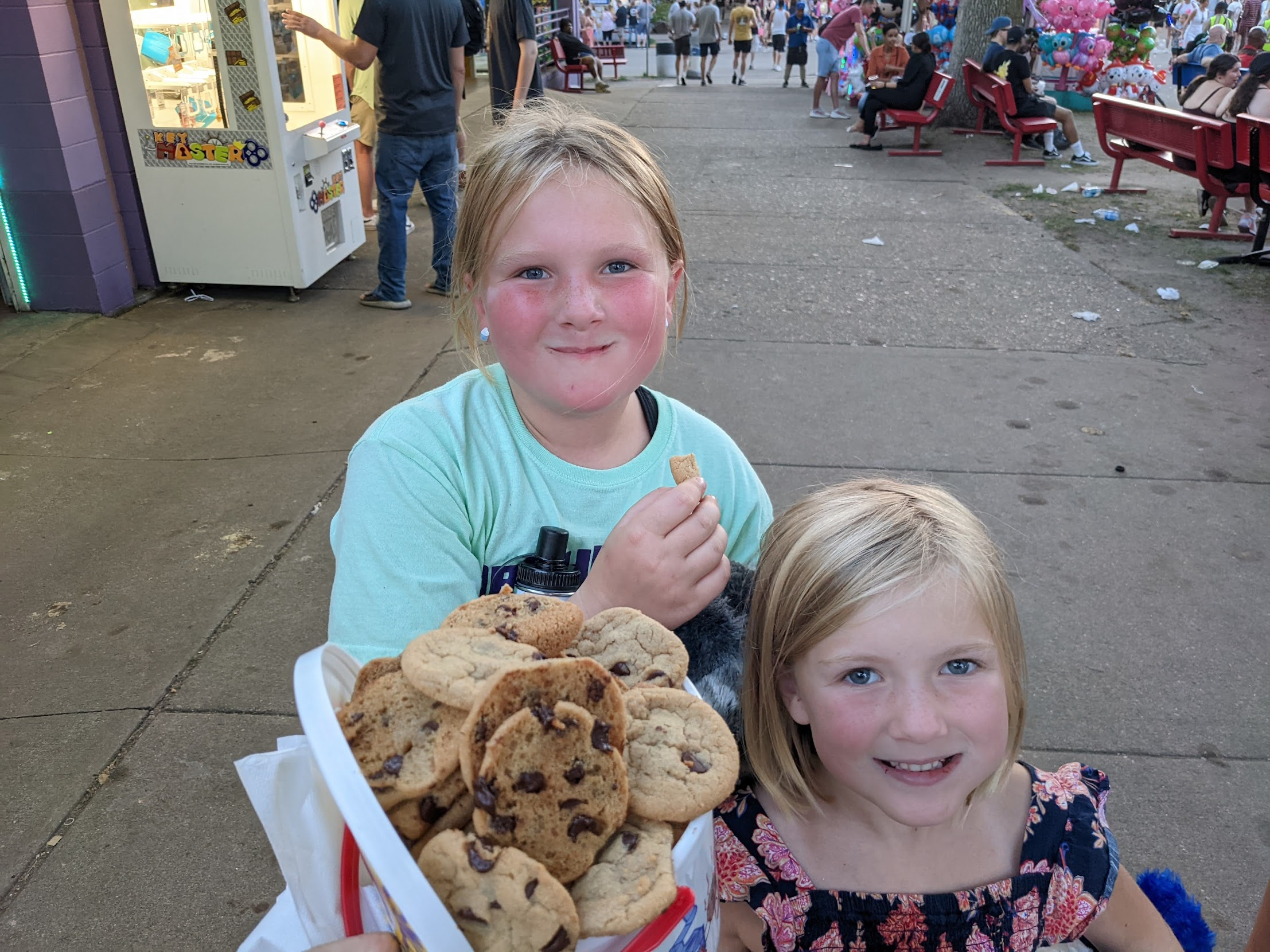 We got a late start this afternoon, so we didn't get to do everything... but I think we hit our biggest favorites. Garlic fries, mini donut beer, cheese curds, butterflies, cookies, rides and games.
