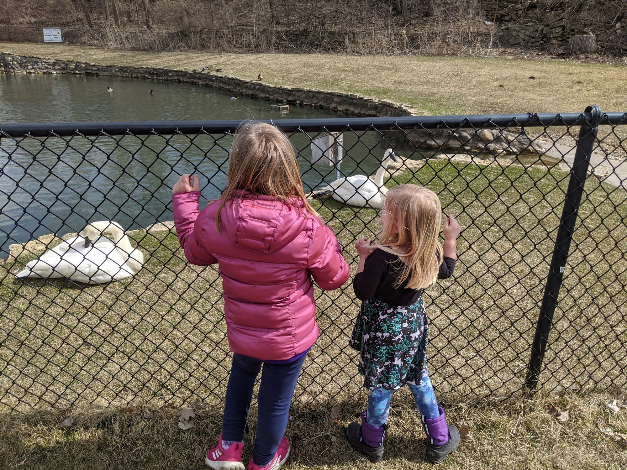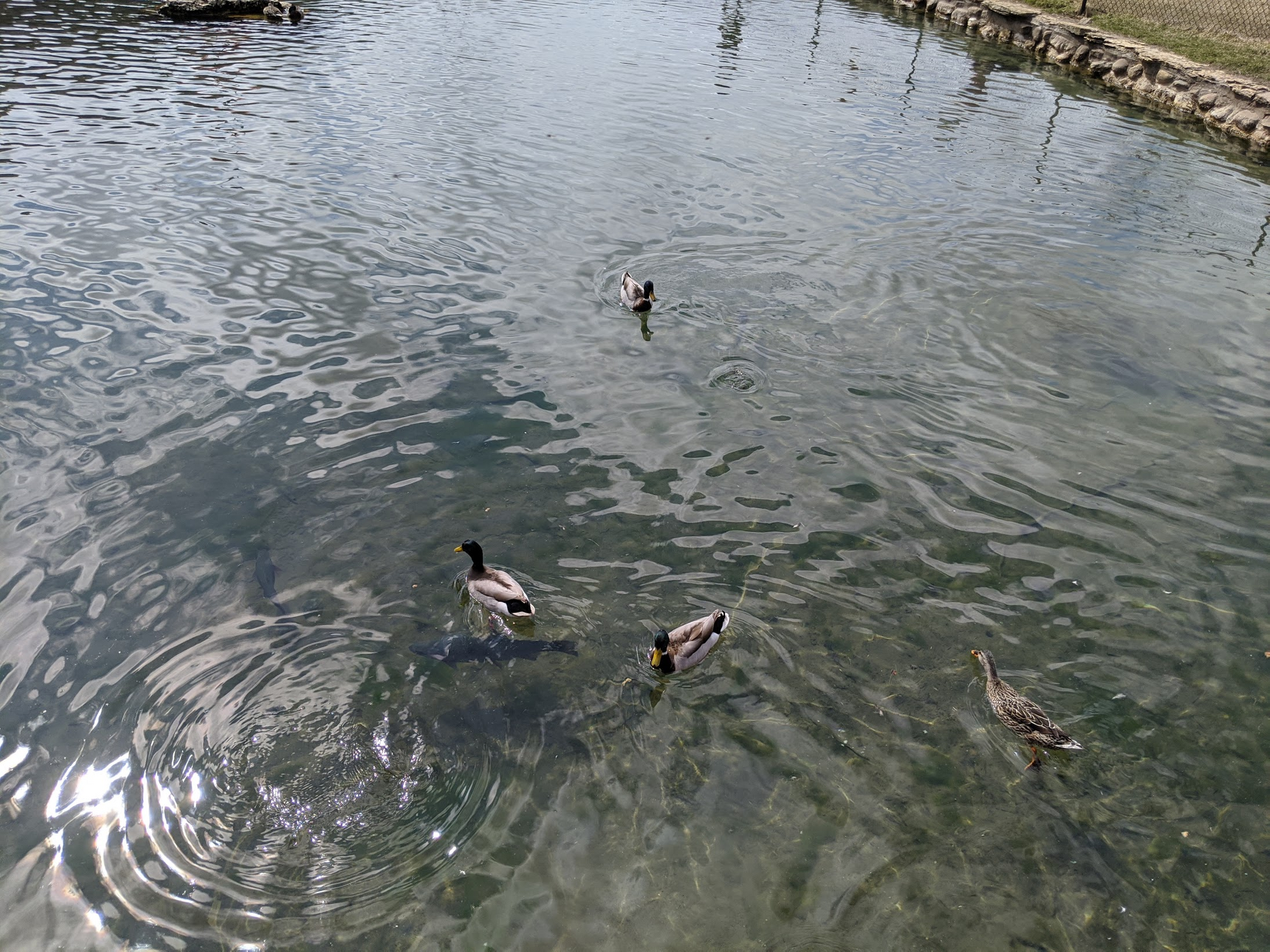I knew the park had a small duck pond, but I didn't realize it was also a trout pond. There were swans too!