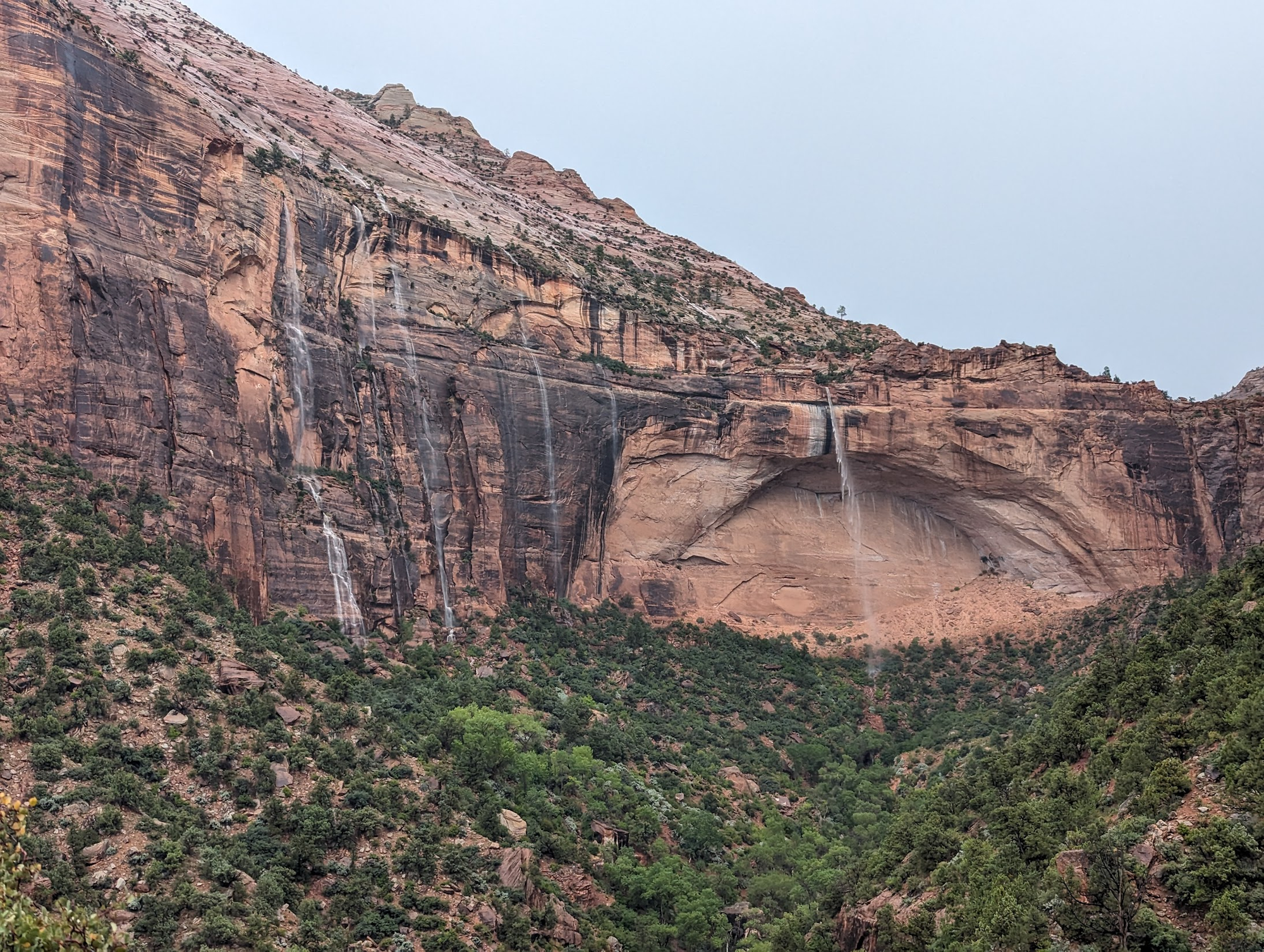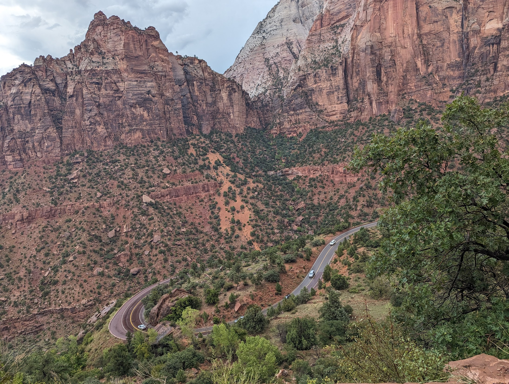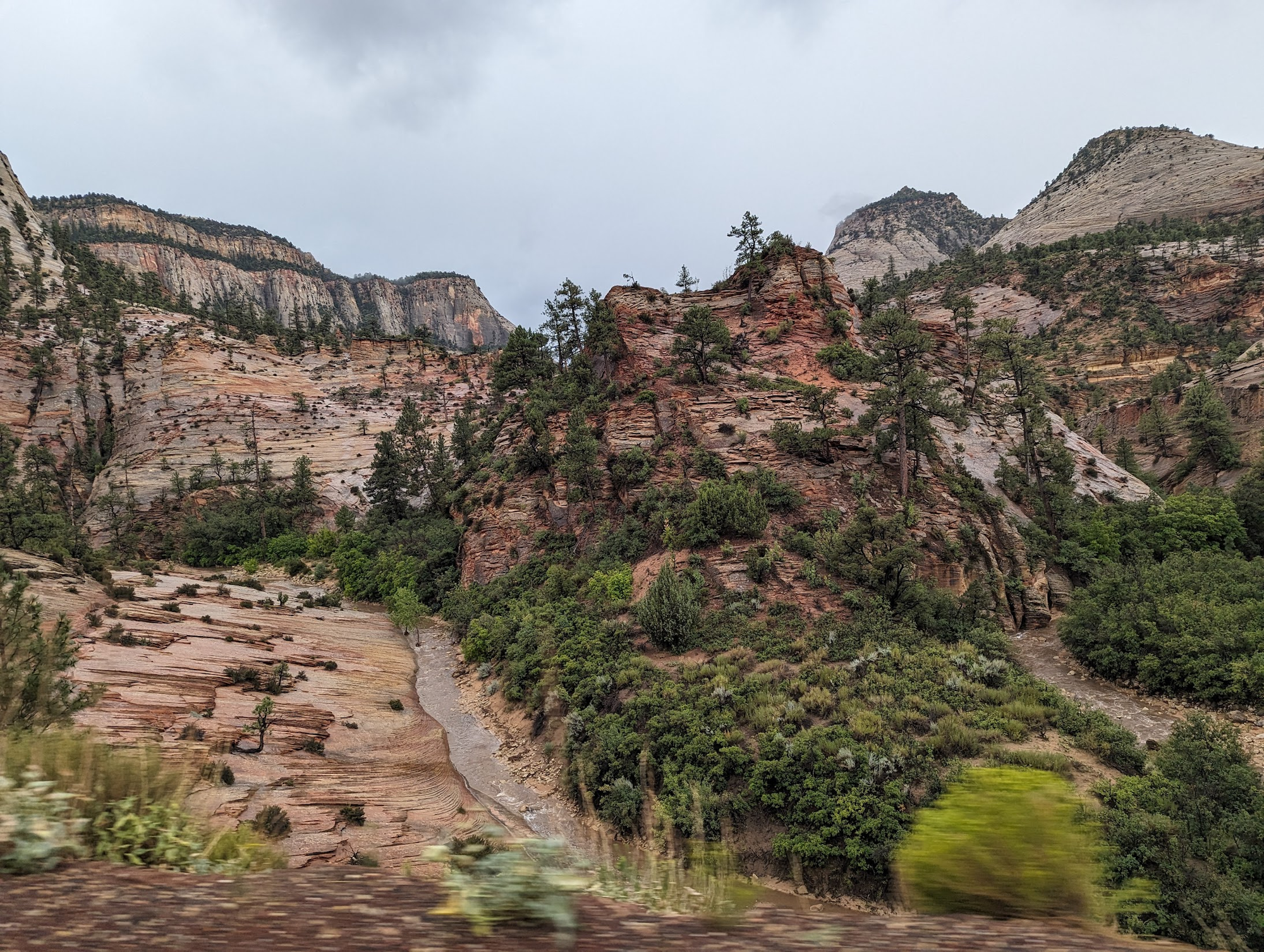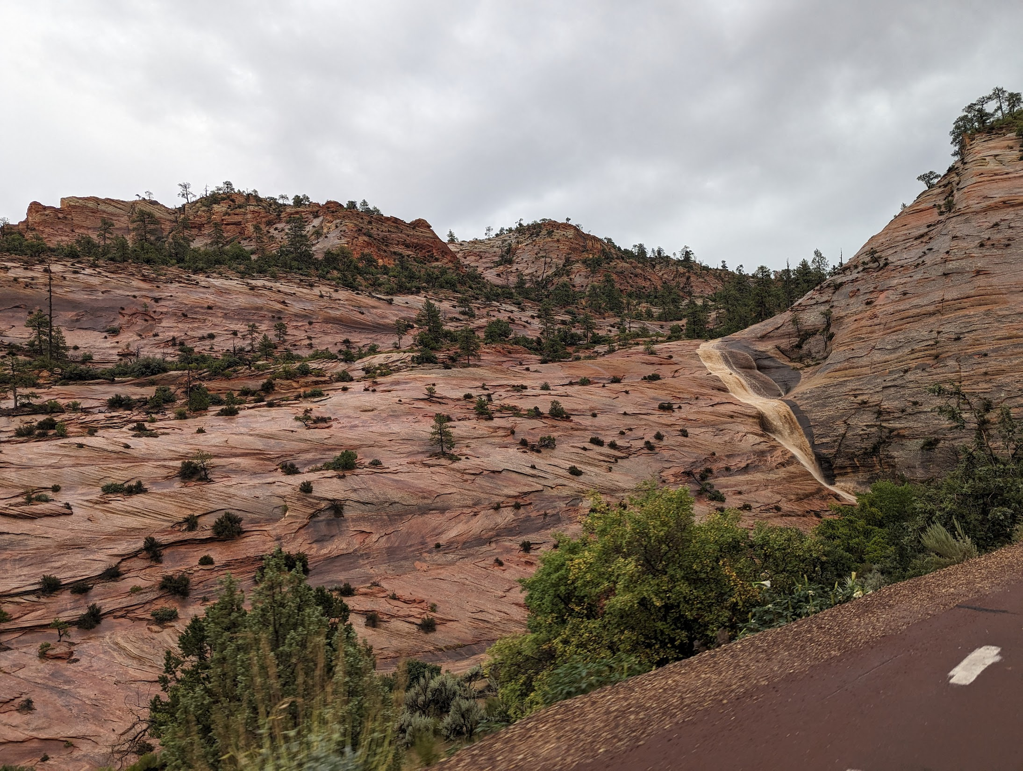Our drive into Zion was not looking promising this morning despite the weather forecast saying low to no chance of rain today.