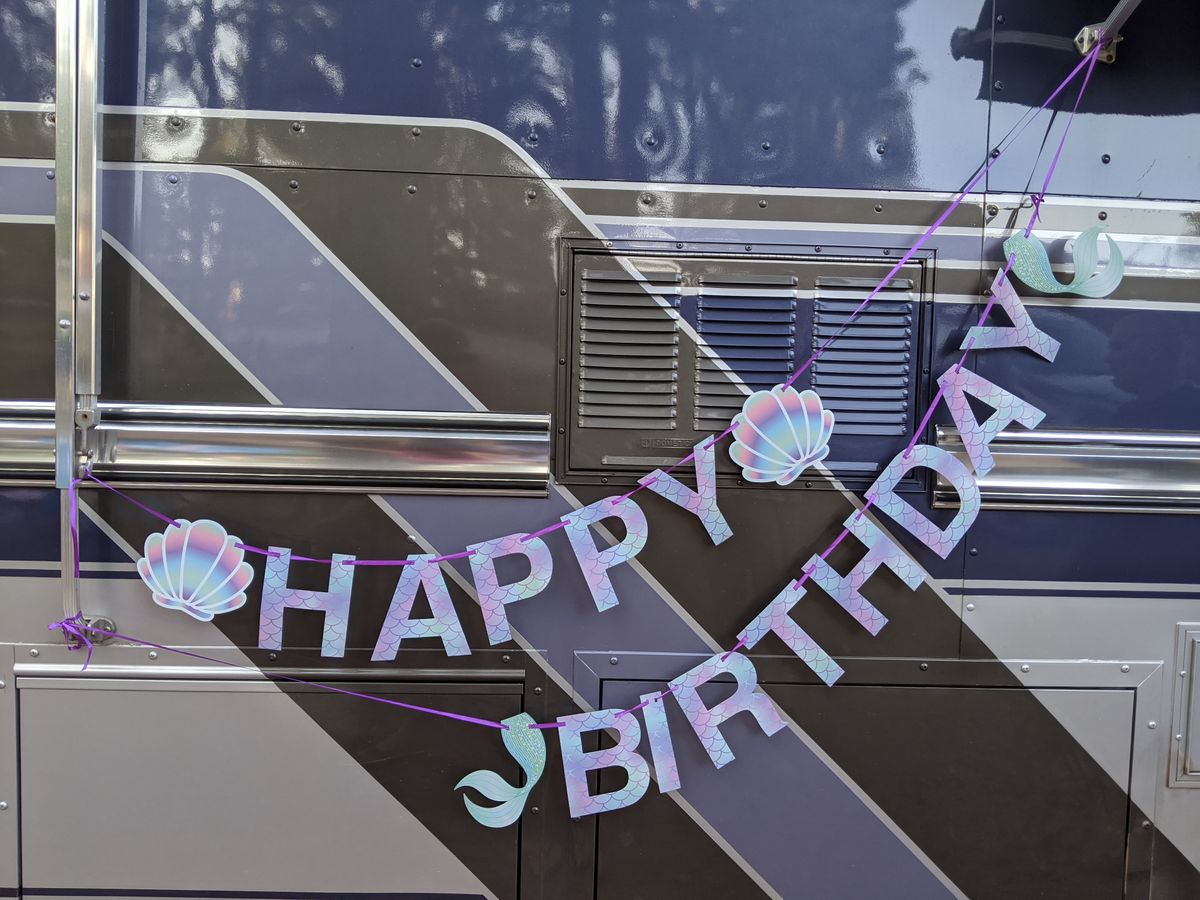 Since I wasn't comfortable having a big birthday party for Emma this year we decided we would do a small one with our friends while we were camping in South Dakota. Today was the day! We celebrated with a mermaid themed party, a pinata and ice cream cake.