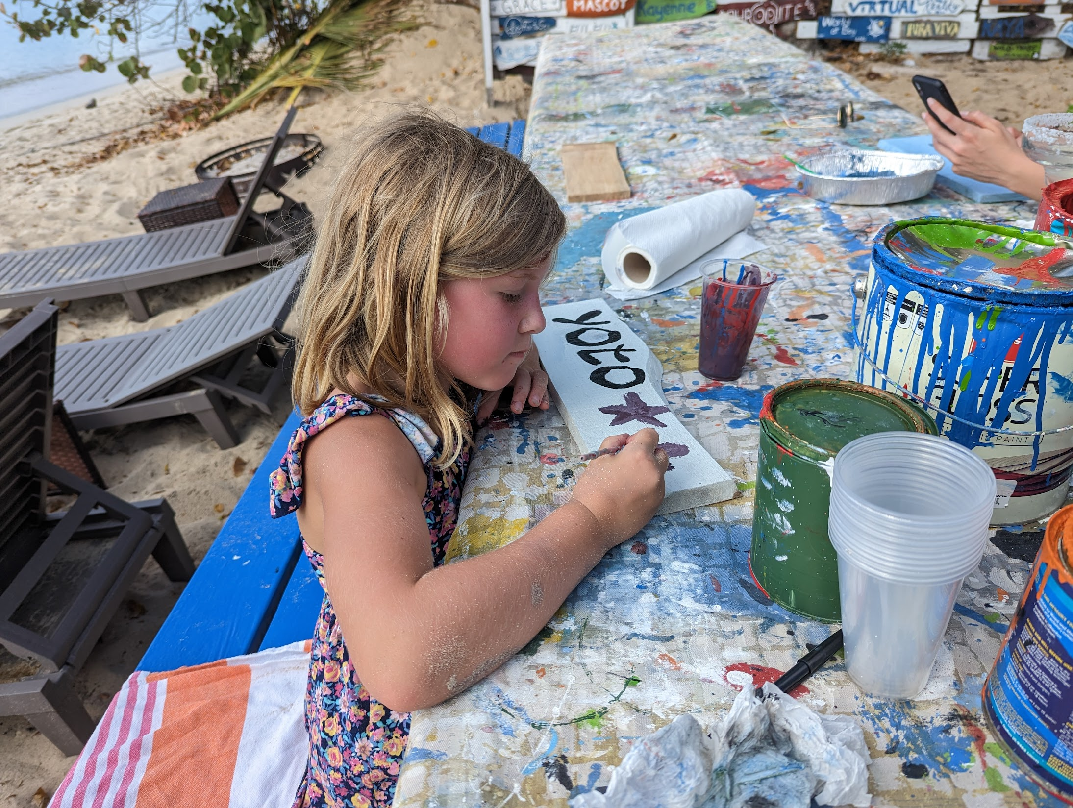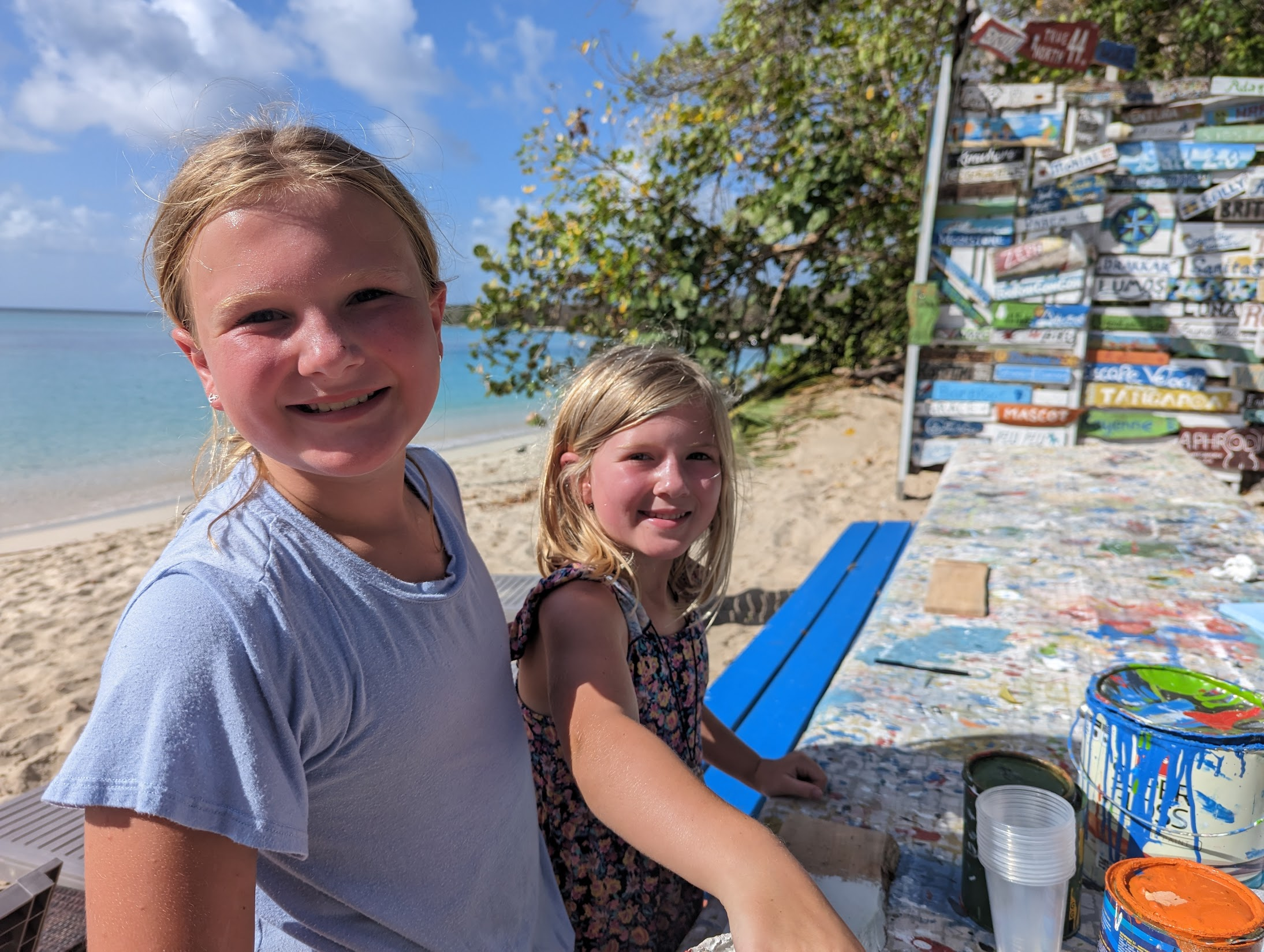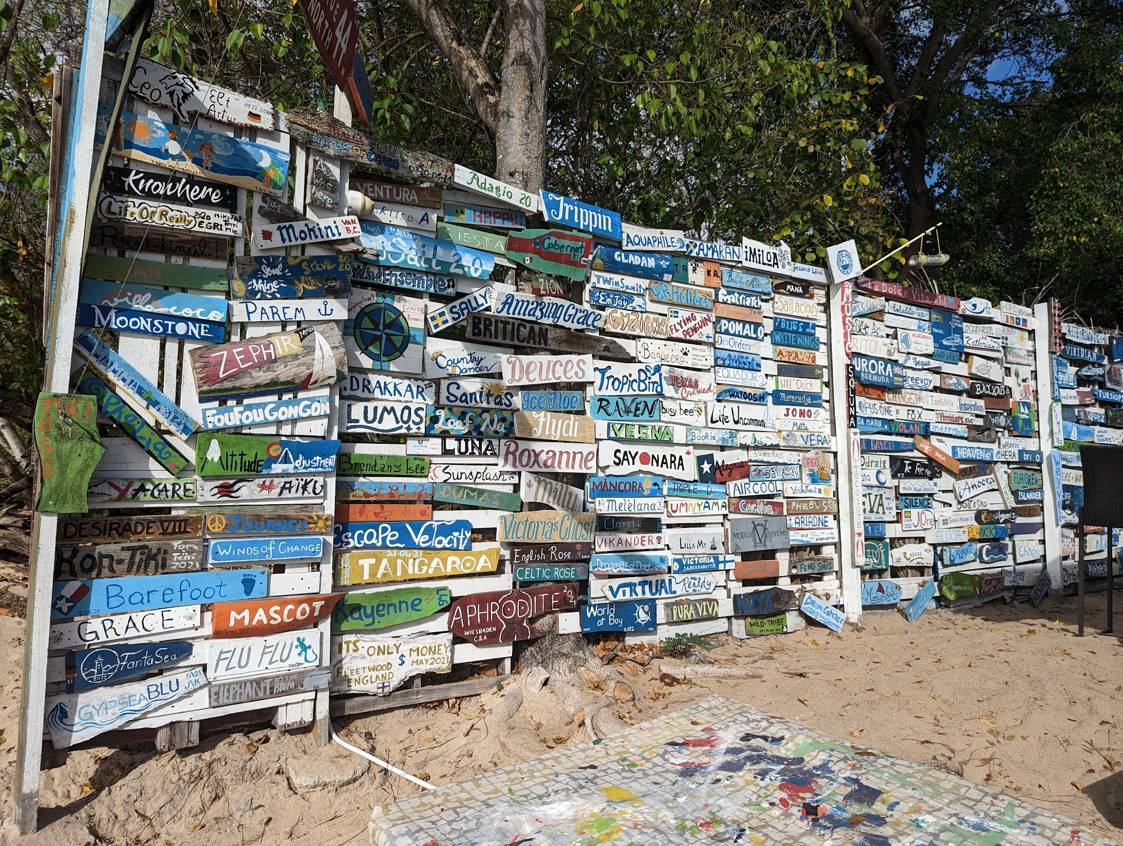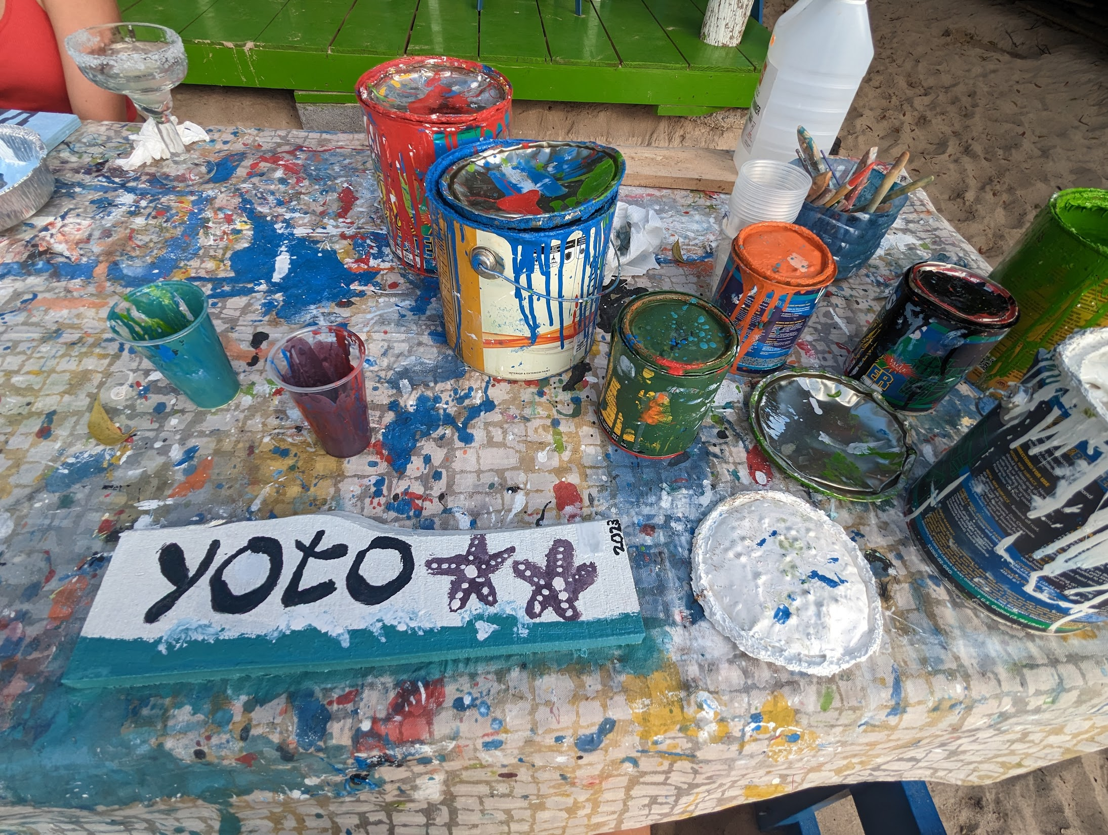 One of the other deciding factors for coming back here today... sip and paint at the restaurant this afternoon. I have been wanting to do this, but it is only every other Wednesday. They provide the wood and the paint for cruisers to paint their boat name on. The waitress told us they have over 700 hanging up on their walls.