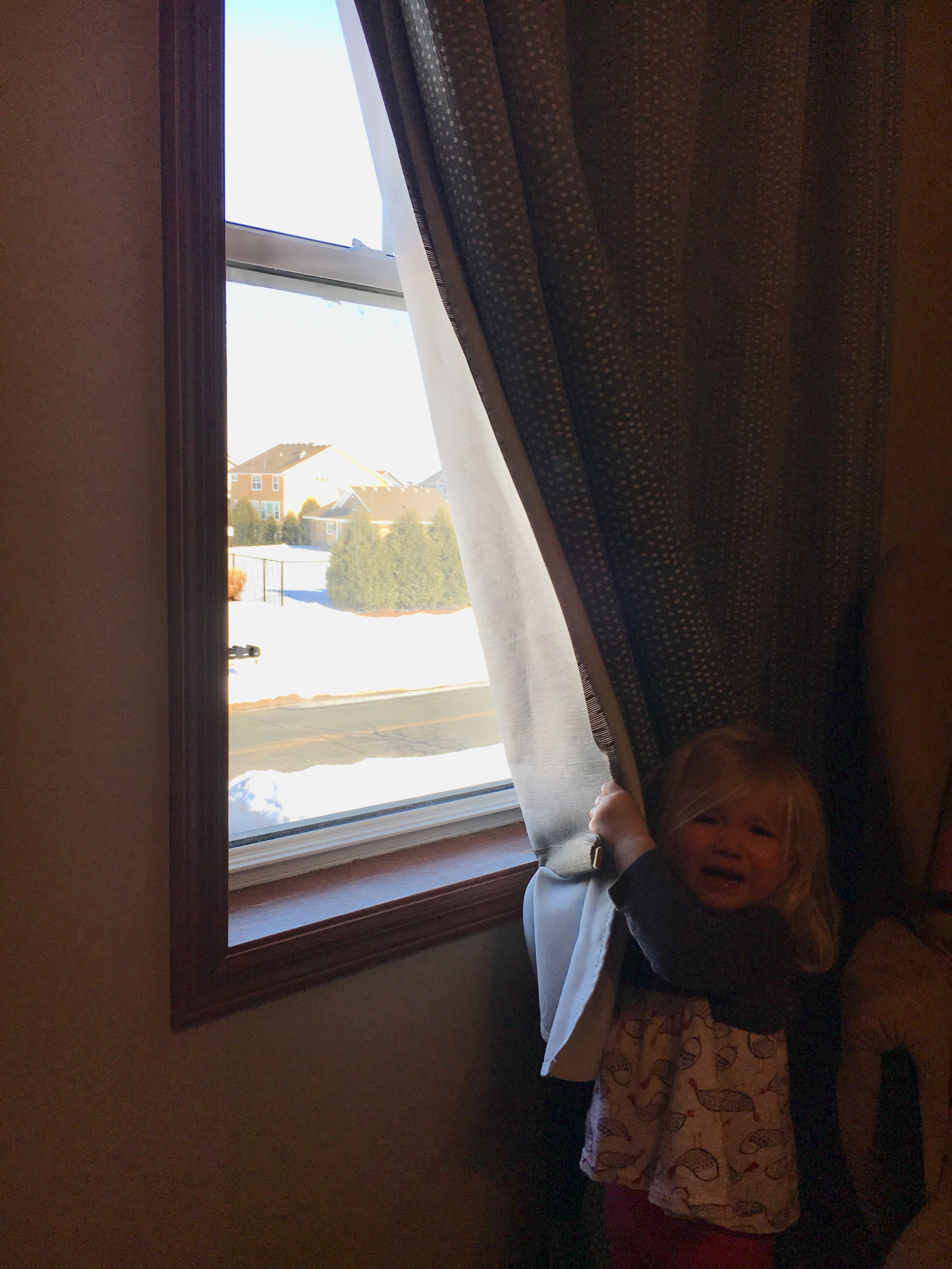 We told Olivia that if it was dark outside it meant it was still bedtime. Every morning she gets out of bed and checks that it’s light out before calling us. That backfired today at nap time when she showed me it is light outside.