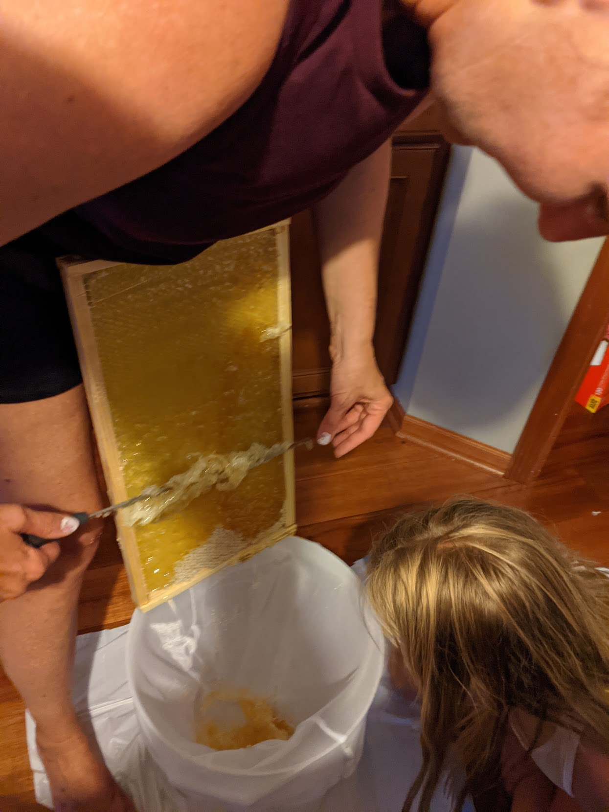 We weren't prepared for harvesting honey yet, so I watched some YouTube videos on ways to do it without the fancy harvesting equipment.