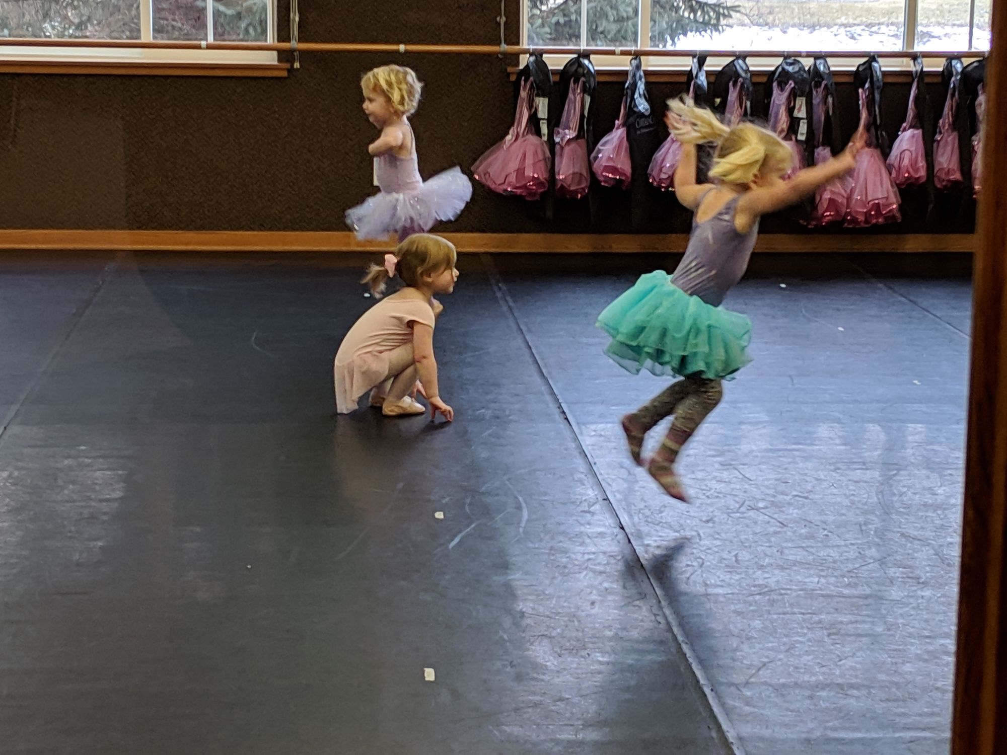 Last week we skipped Olivia's gymnastics class because Emma was home and I didn't want to drive in the snow. I scheduled her make up class for Tuesday afternoon, but first it was dance in the morning.