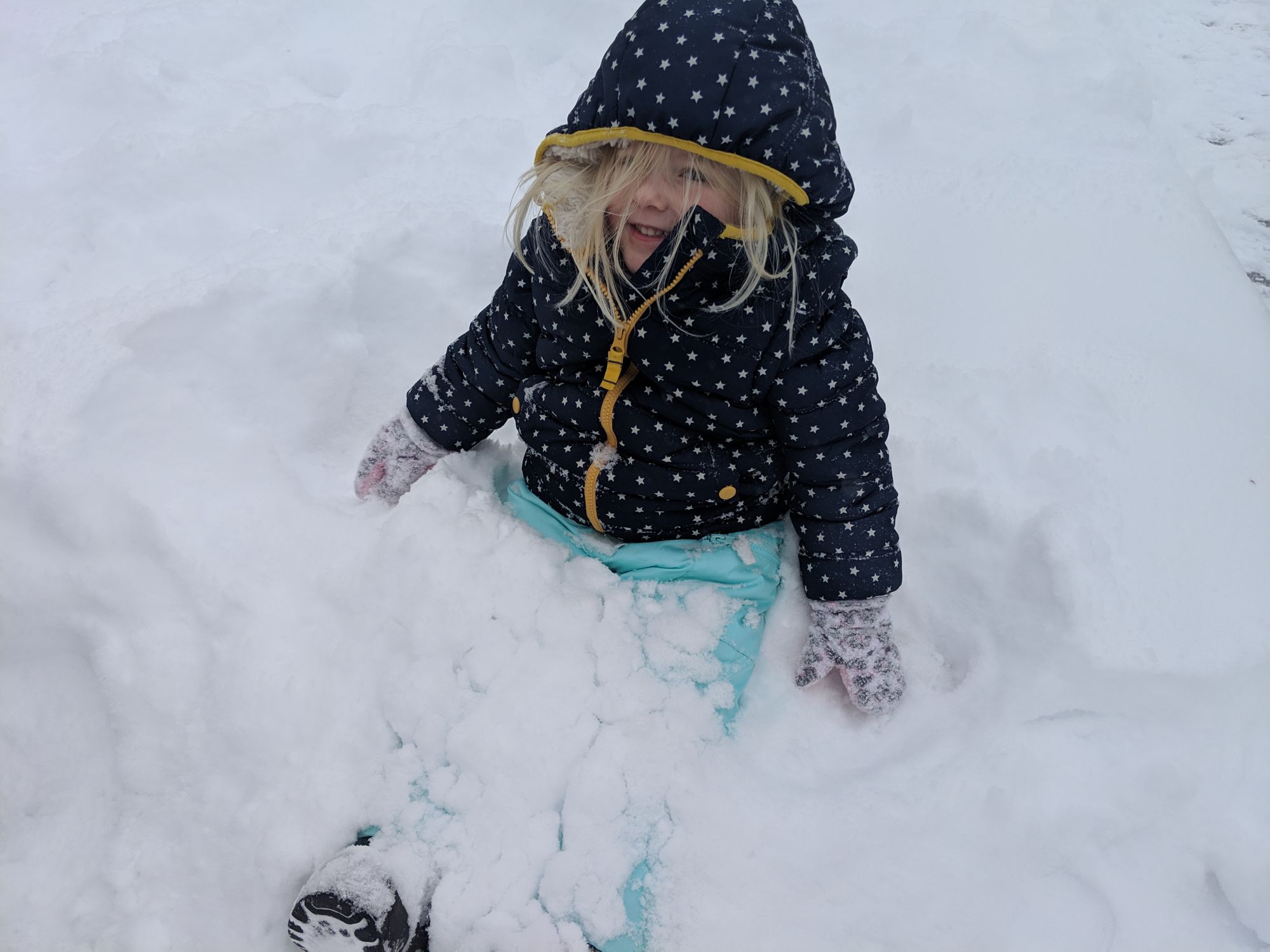 Olivia thought it was a good idea to bury herself in the snow at the bus stop like she was at the beach. 😂🏖️
