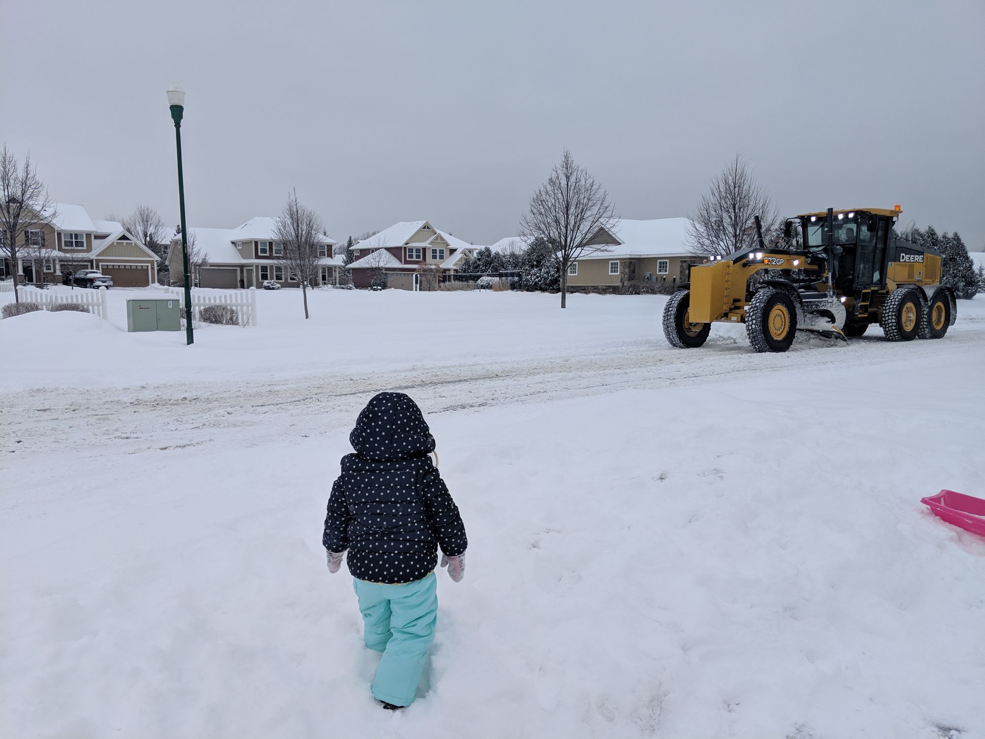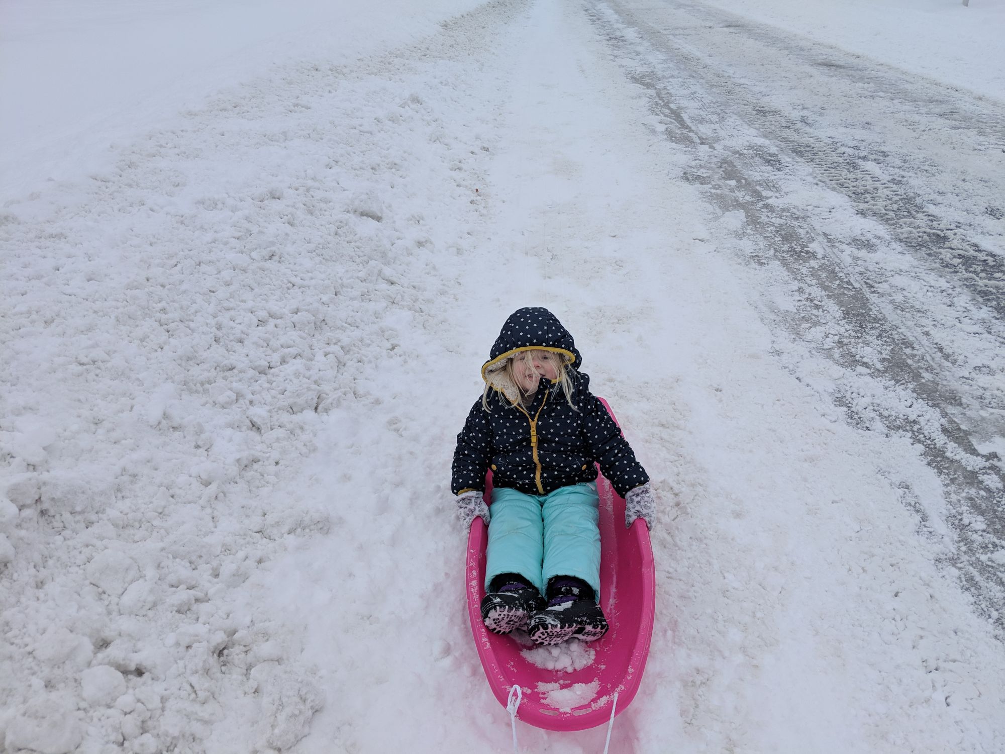 It was warm enough yesterday afternoon to walk to the bus stop, but I didn't even think to bring the sled for Olivia! This morning I did not make that mistake again.