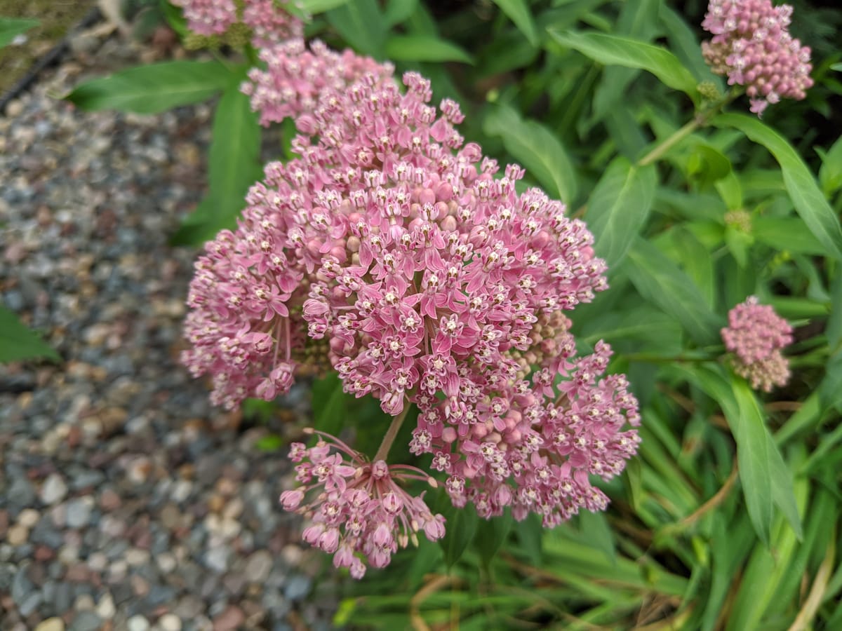 The other day I was checking on things in the yard when I saw a monarch laying eggs on some of the milkweed we have in our yard.
