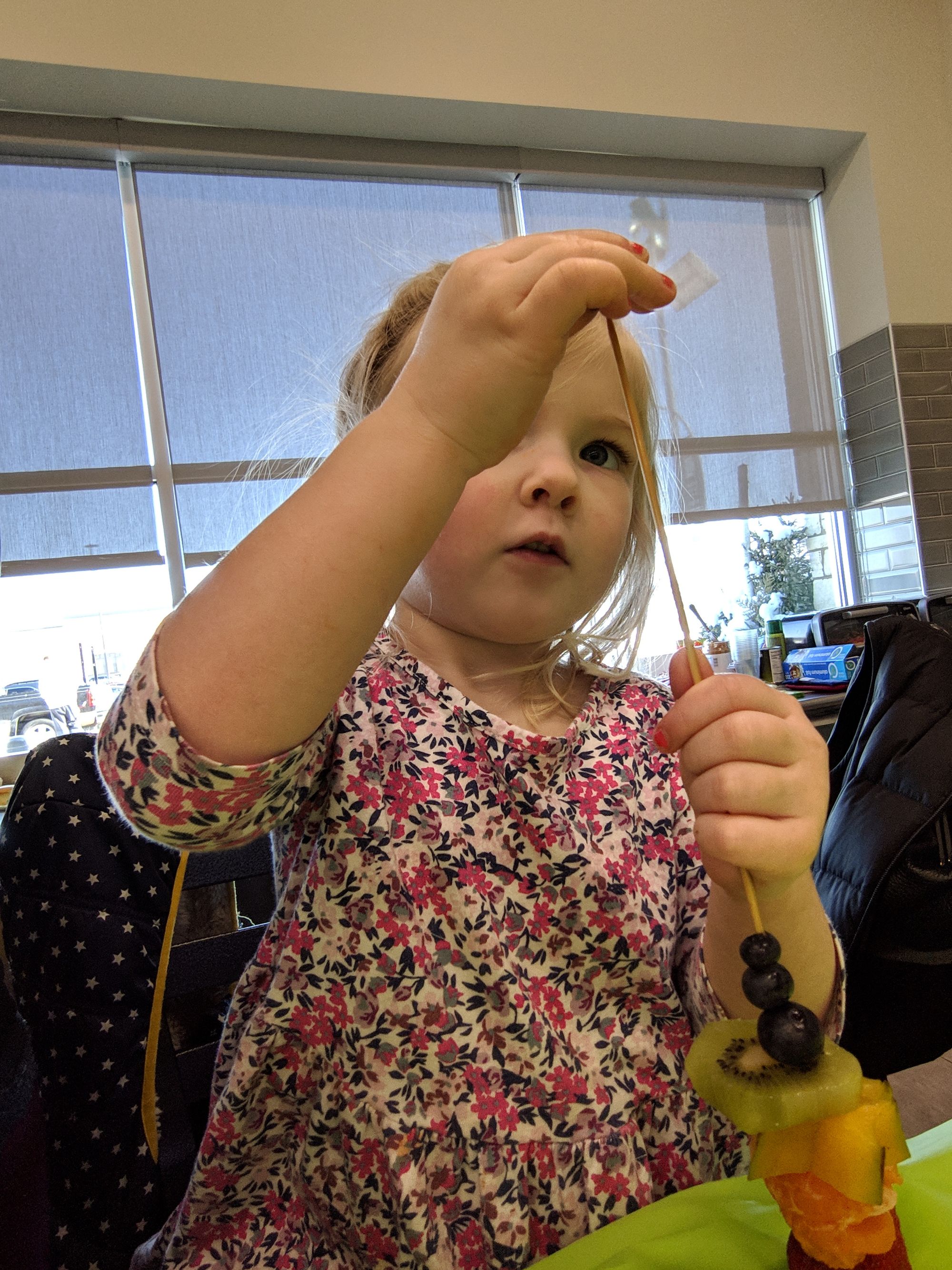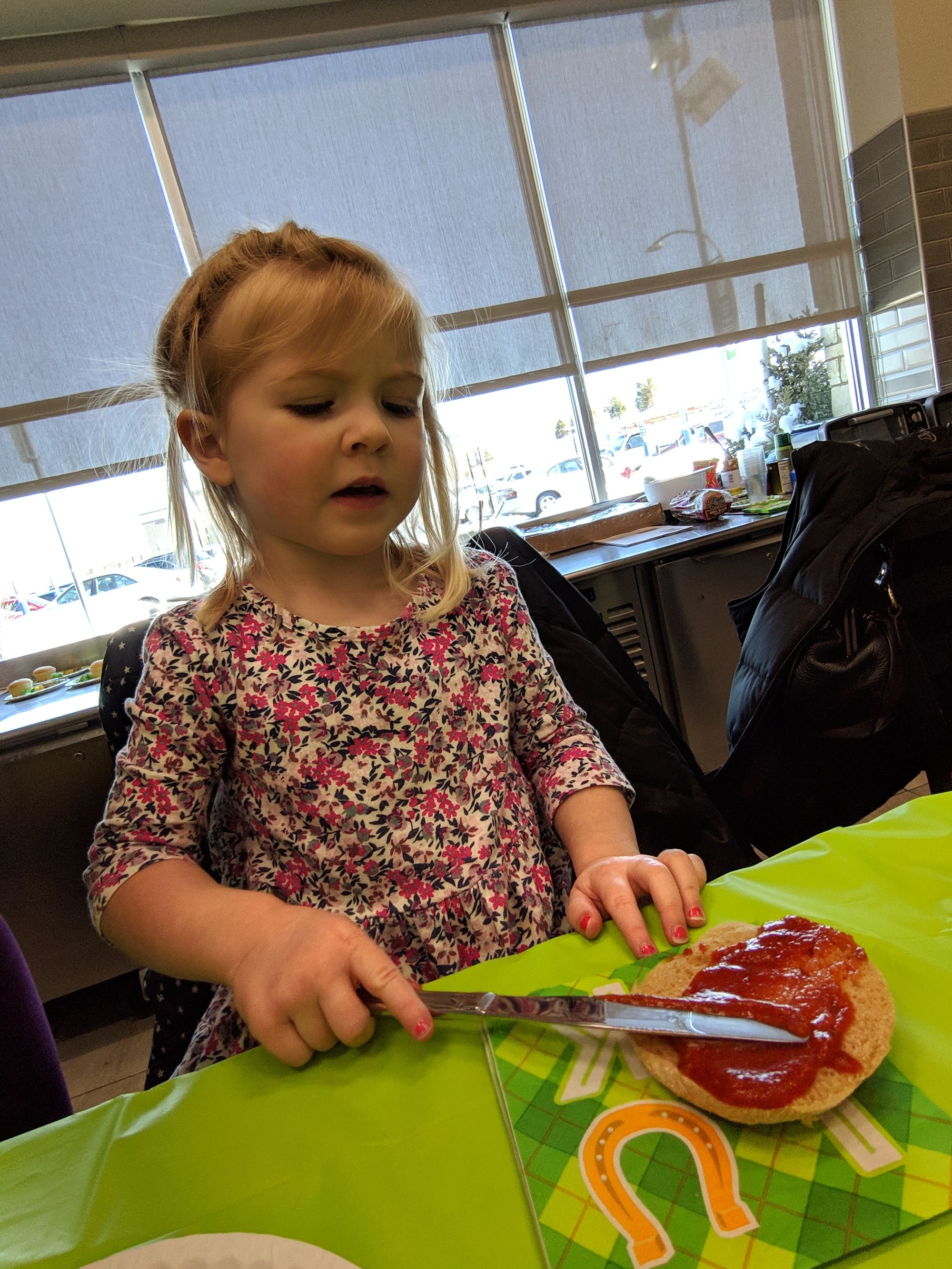 The grocery store where Emma usually does cooking class started offering a toddler/parent class. Olivia loves to help in the kitchen, so we gave it a try.