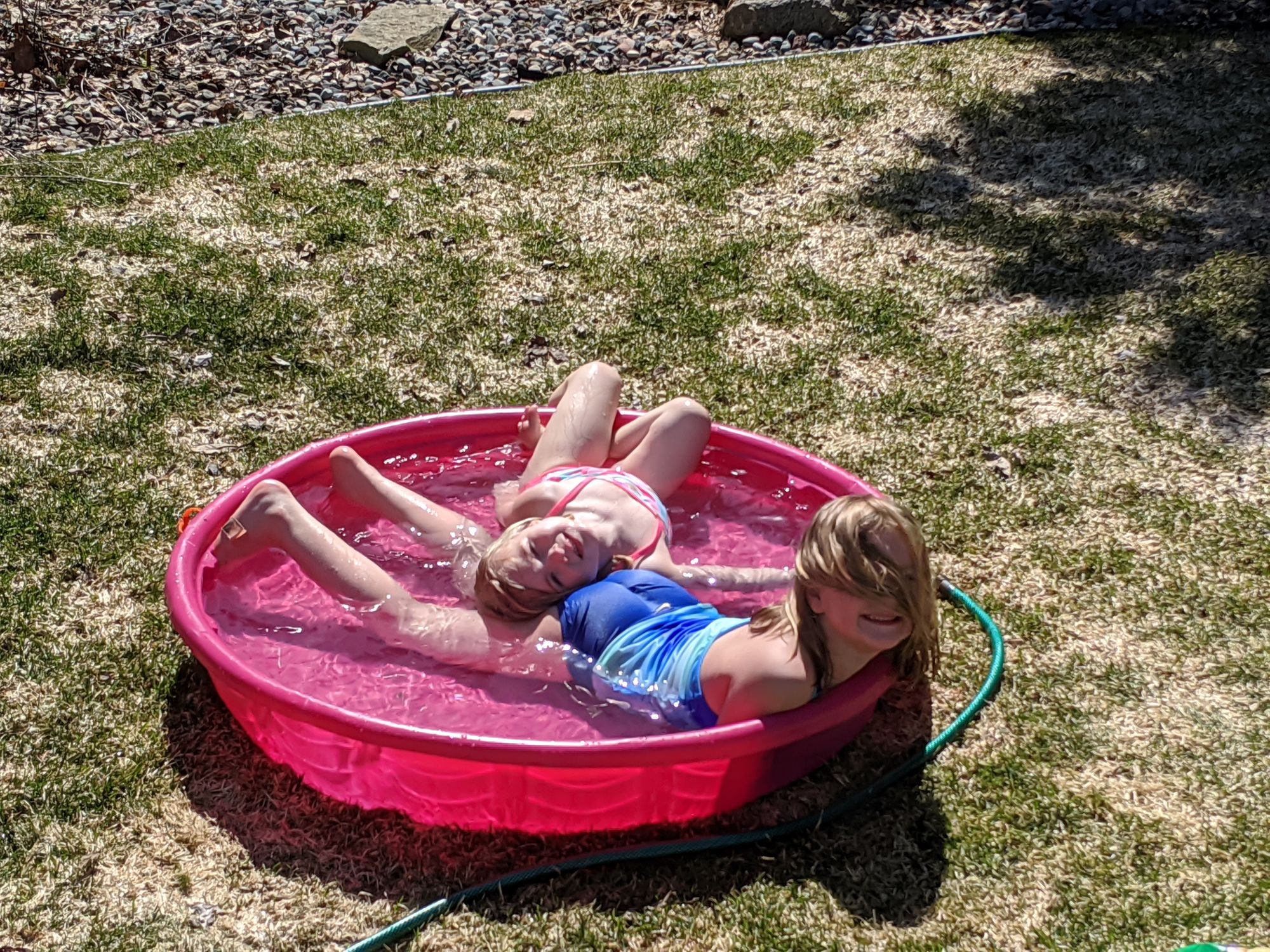 Emma got her wish and took a swim in the kiddie pool. FYI - it was maybe 60 degrees today.