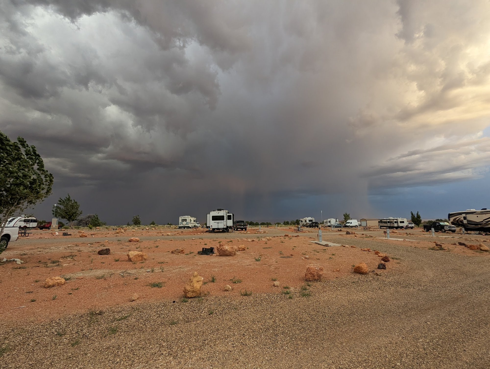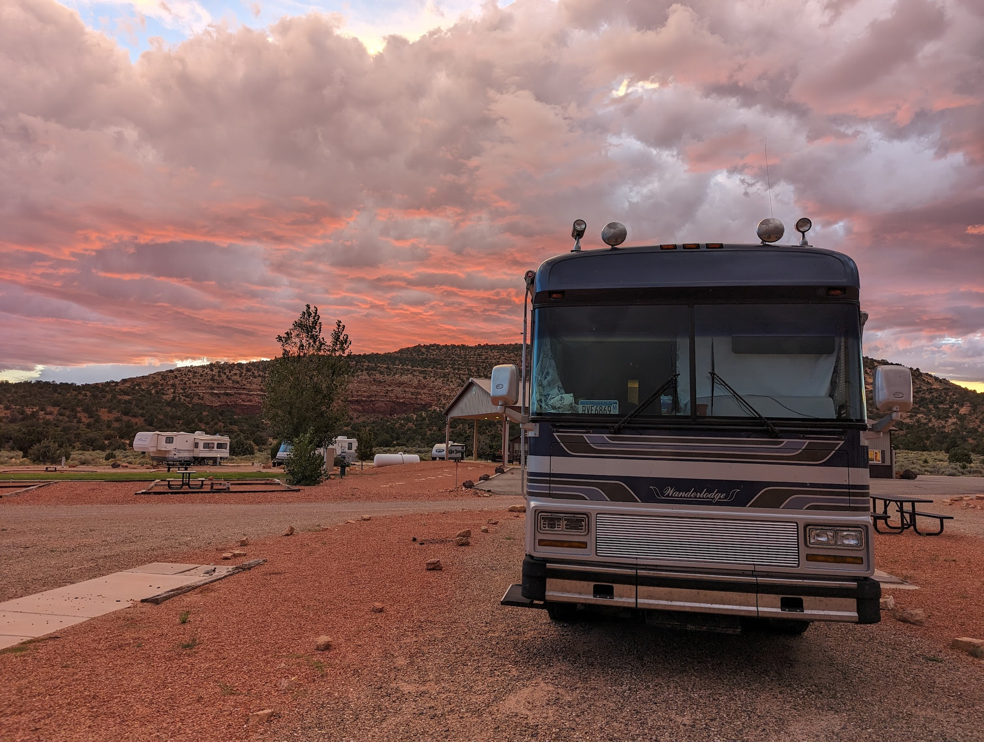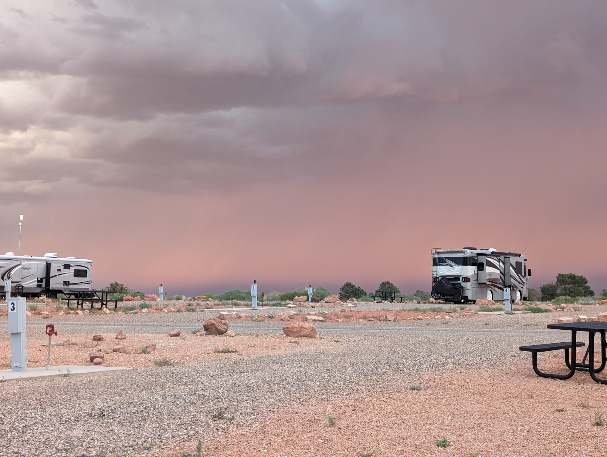We were pretty excited to see the sight of rain tonight. Our 33 year old bus air conditioners had a hard time keeping up in 100+ degree weather, so we are ready for some cooler temperatures.