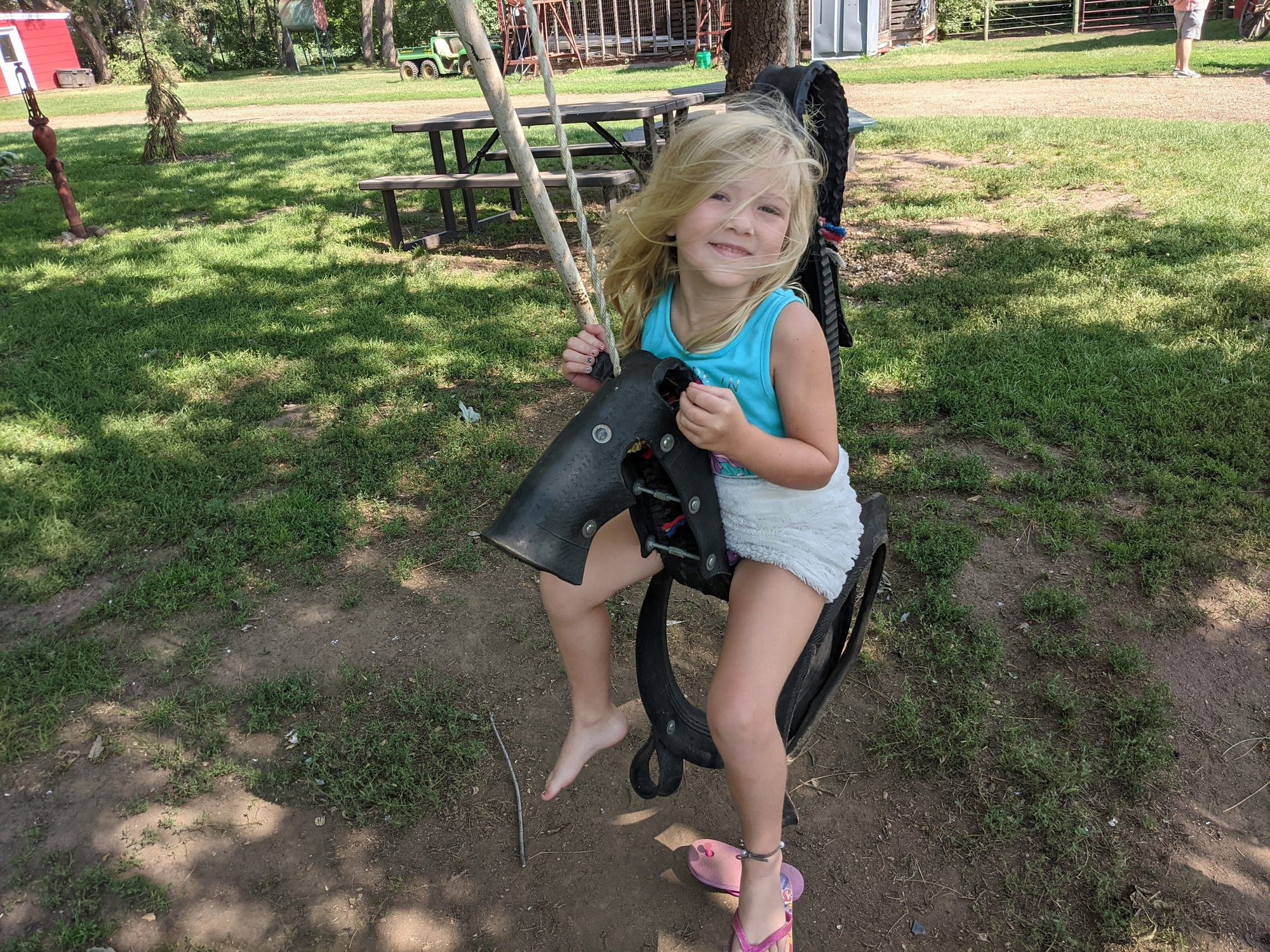 Olivia didn't do horse camp, but that didn't stop her from having some fun at the barn during drop off and pick up.