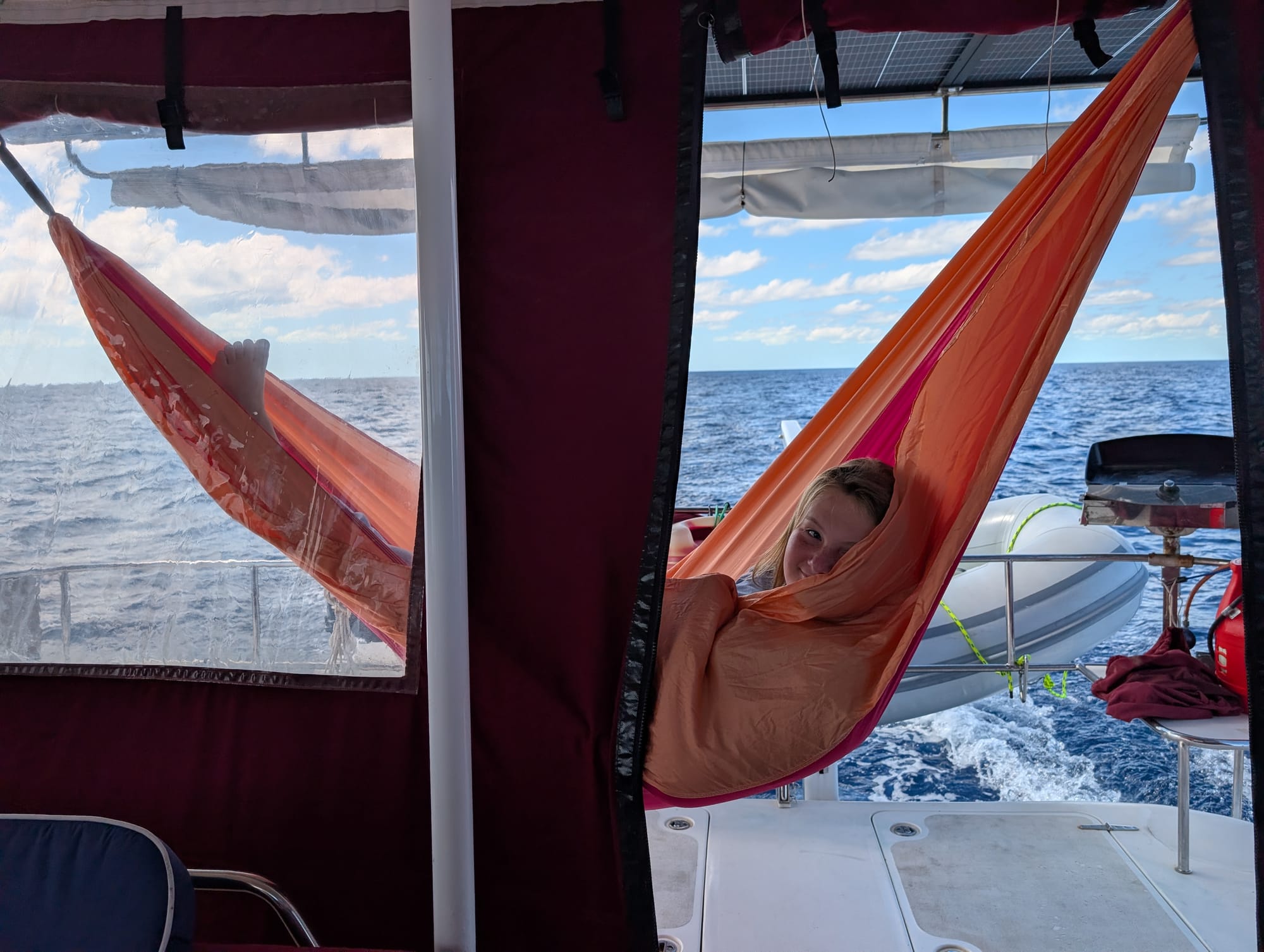 When we're on passage we let the girls skip school. Braden and I are always busy taking care of the boat or napping, so they find ways to entertain themselves. For this trip they did some self care, listened to music in the hammock and tended to my plants.