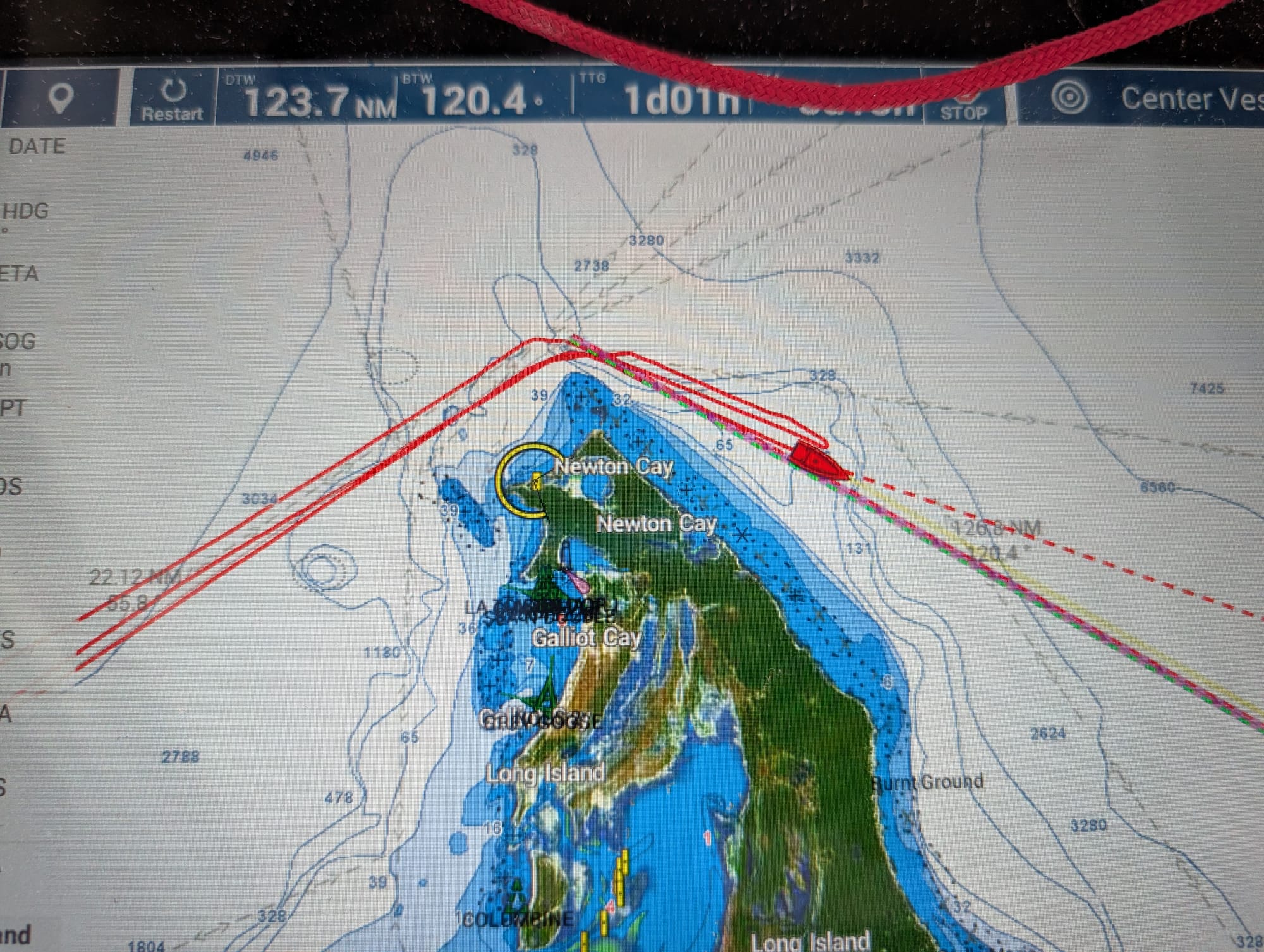 We were about 6 hours out of George Town when one of our engines started having issues. We tried to troubleshoot it, but decided we needed to turn around and head back to George Town to try to fix it. After we turned back towards George Town we figured it out and decided to turn back around and continue on to Turks and Caicos. I'm sure anyone watching us was wondering what the heck we were doing.