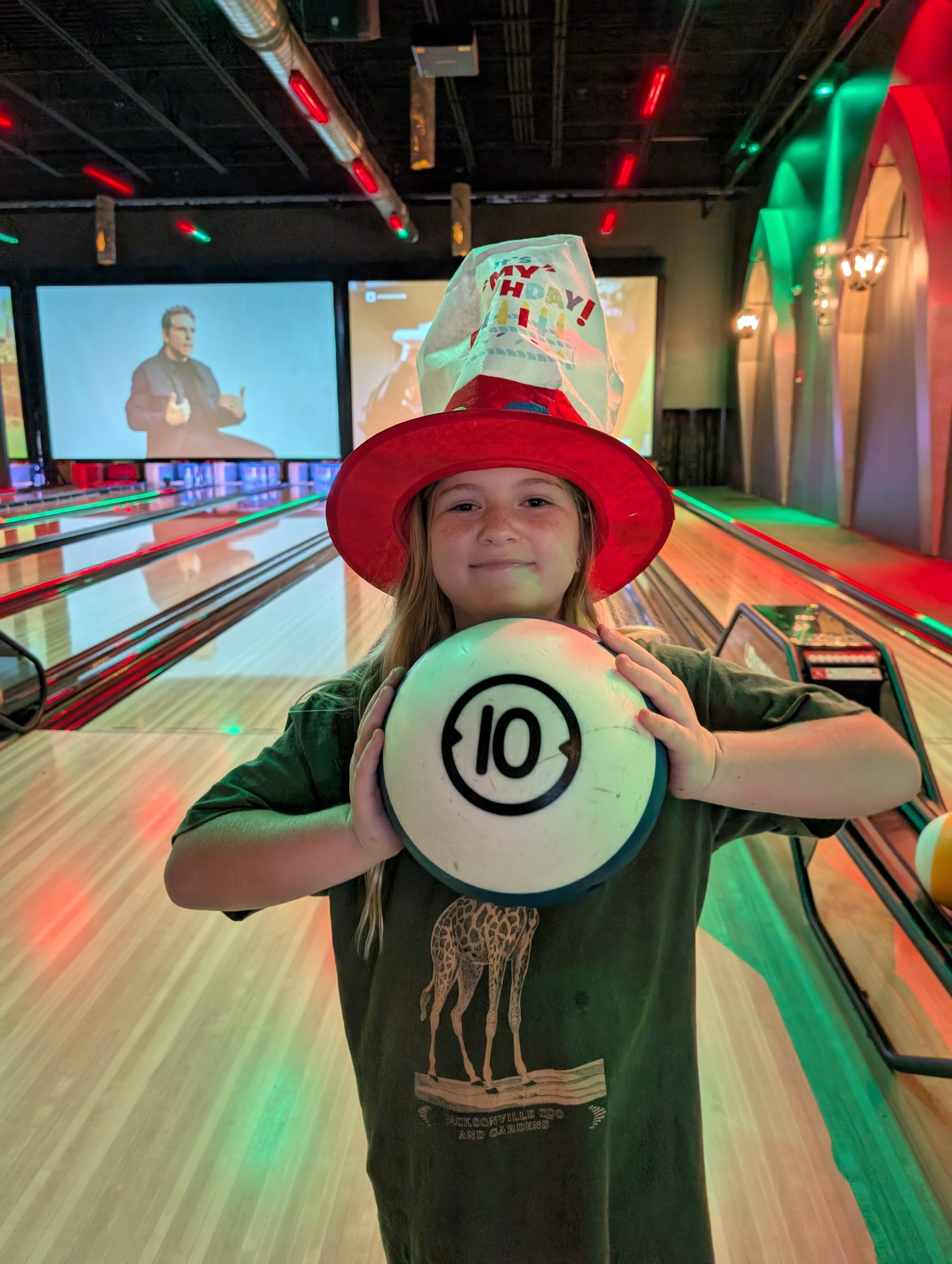 (2) We're lucky to be in West Palm Beach with some friends who were all in to help us celebrate - bowling, cake, arcade, go karts and dinner.