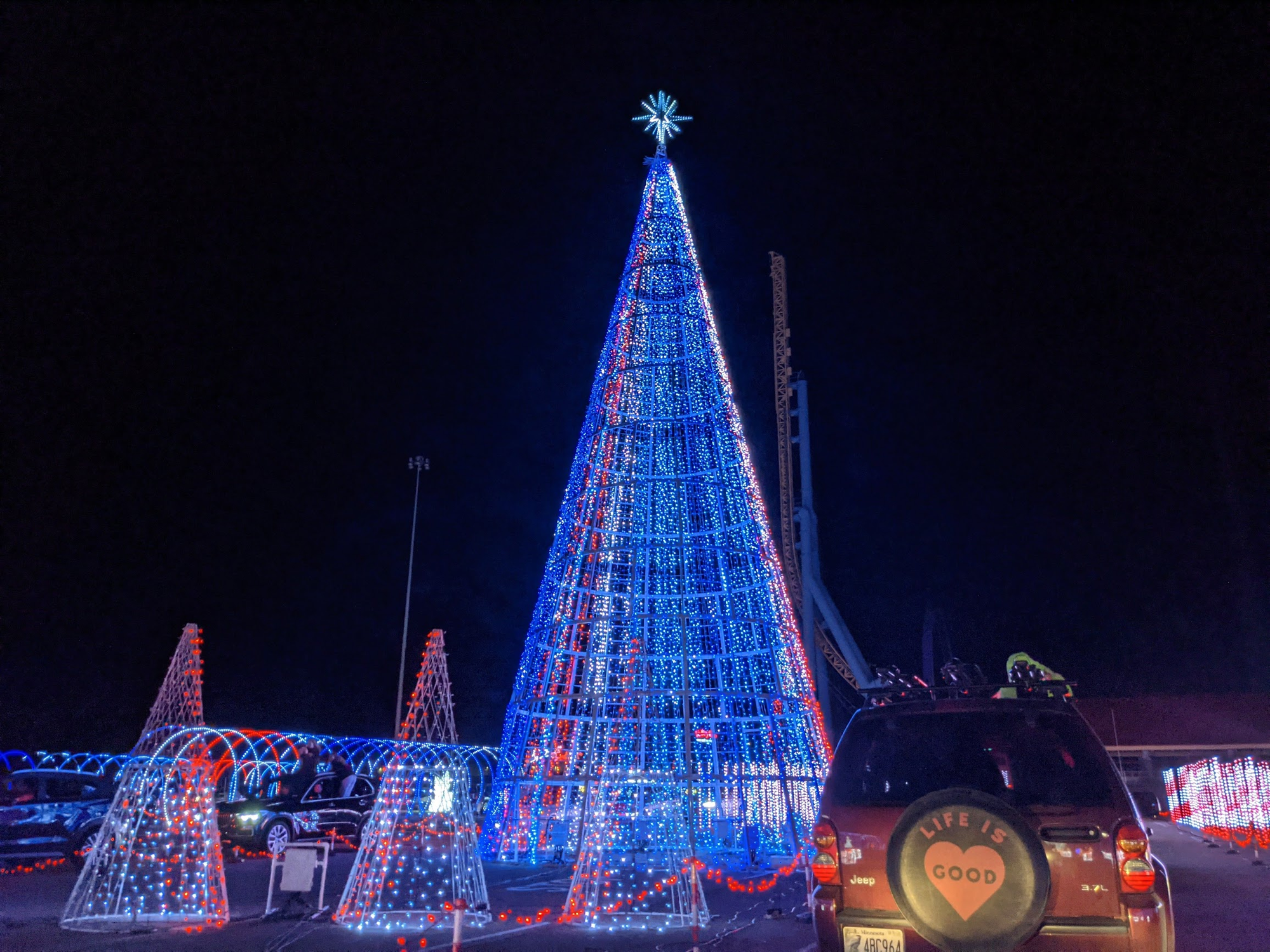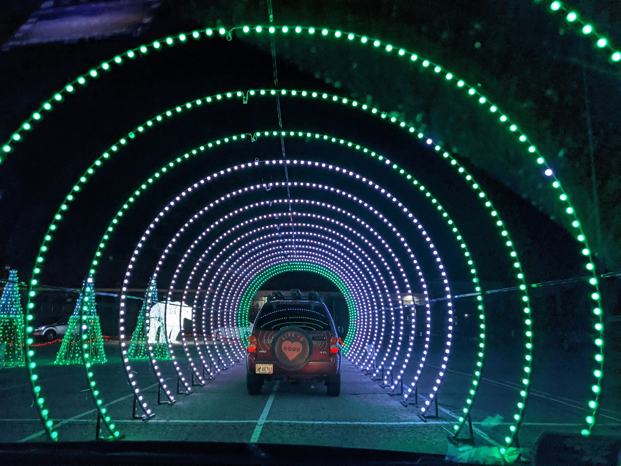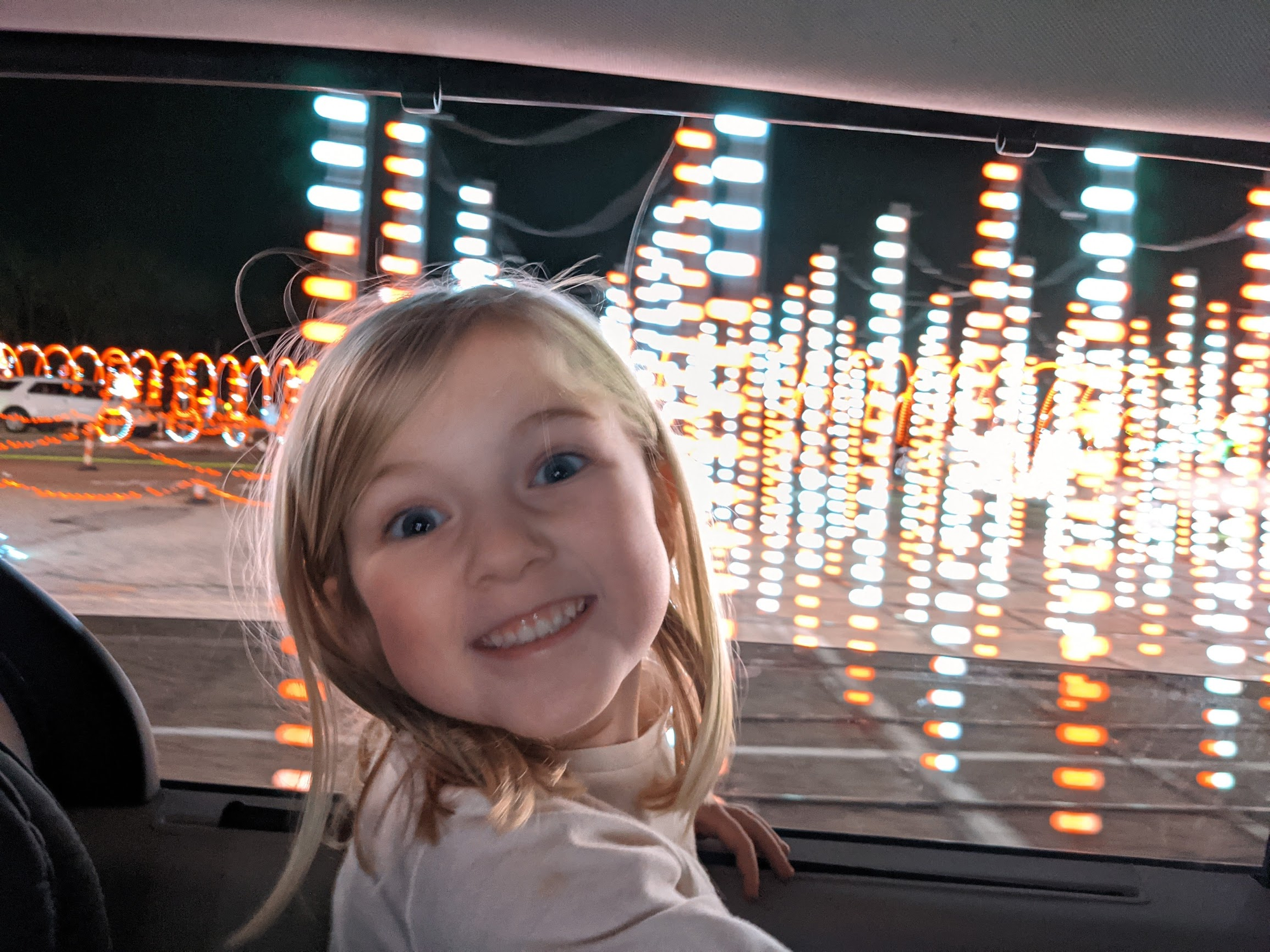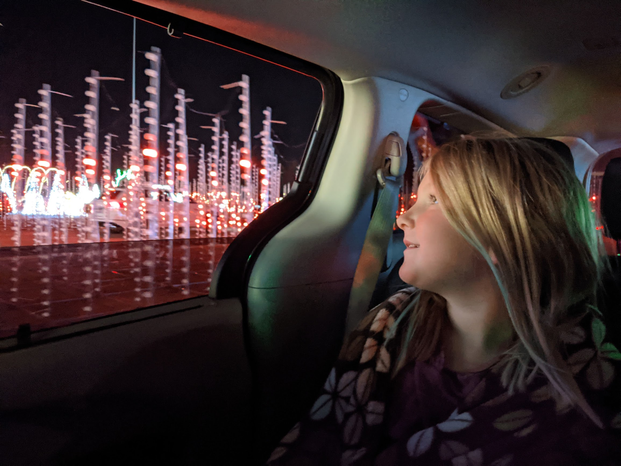 To wrap up the day of celebration we went to one of the drive through light shows. I thought it would be cool and something to do. I had no idea Olivia would love it this much. I mean... just look at the smile on that 5 year old's face!