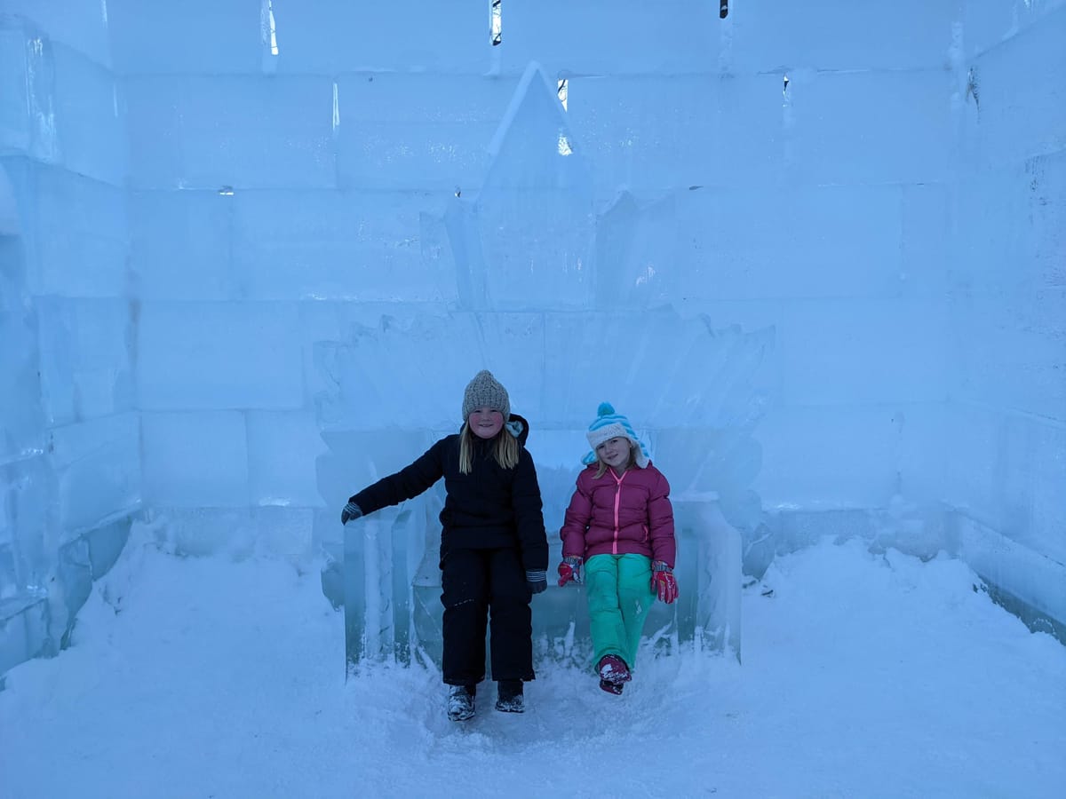 The girls had fun doing the maze over and over, but I think their favorite might have been the huge ice slide (and the hot chocolate).
