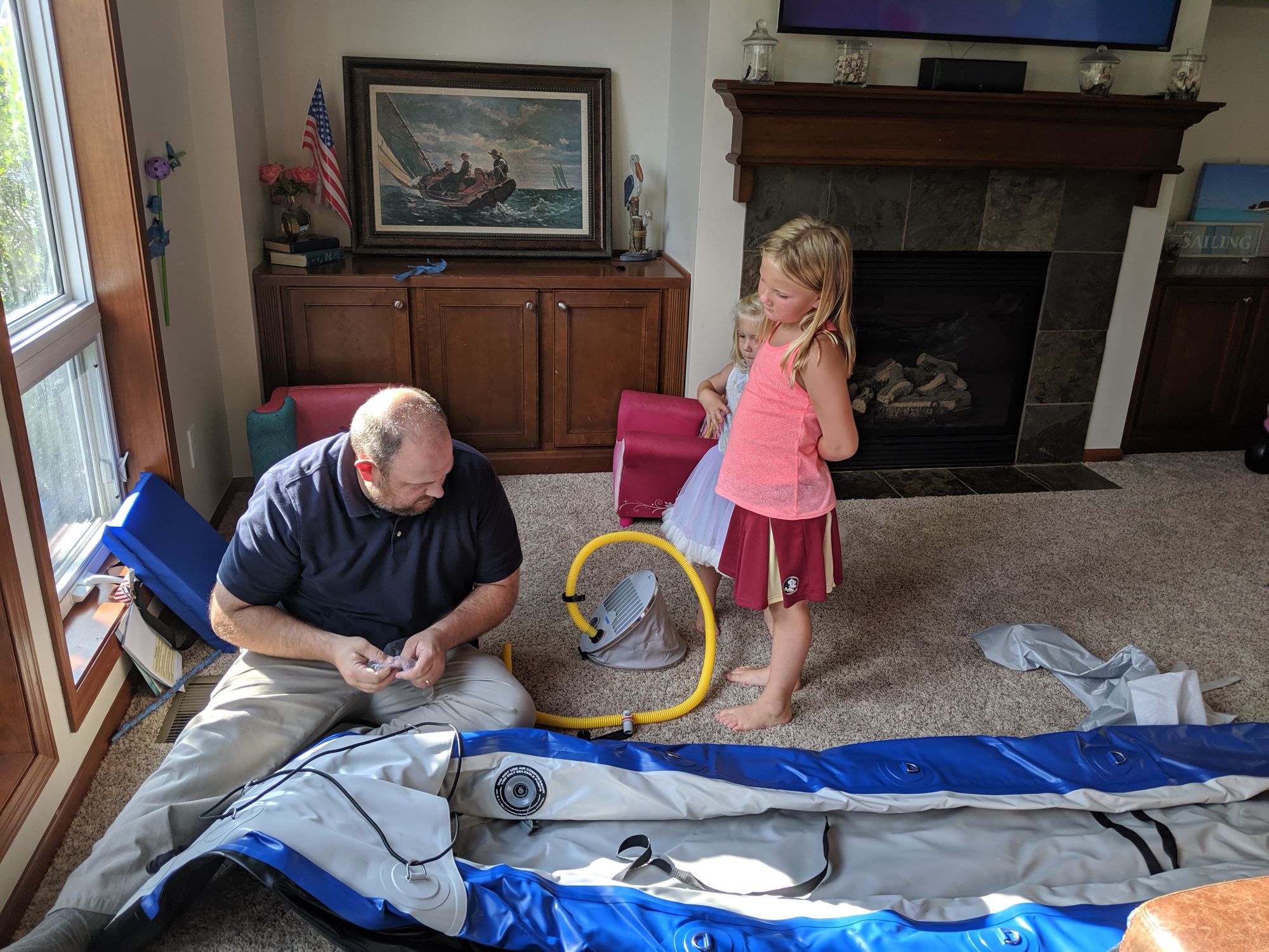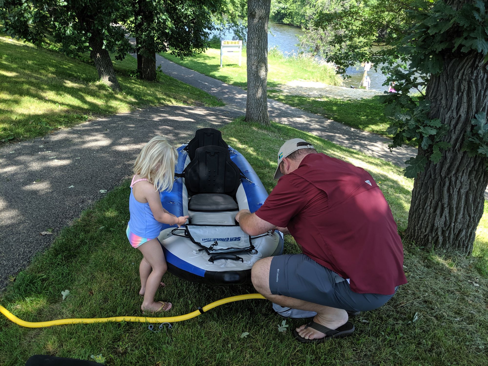 Braden has wanted a kayak for a long time. After Emma had such a great time kayaking while we were camping last month we ended up buying our own inflatable kayak.