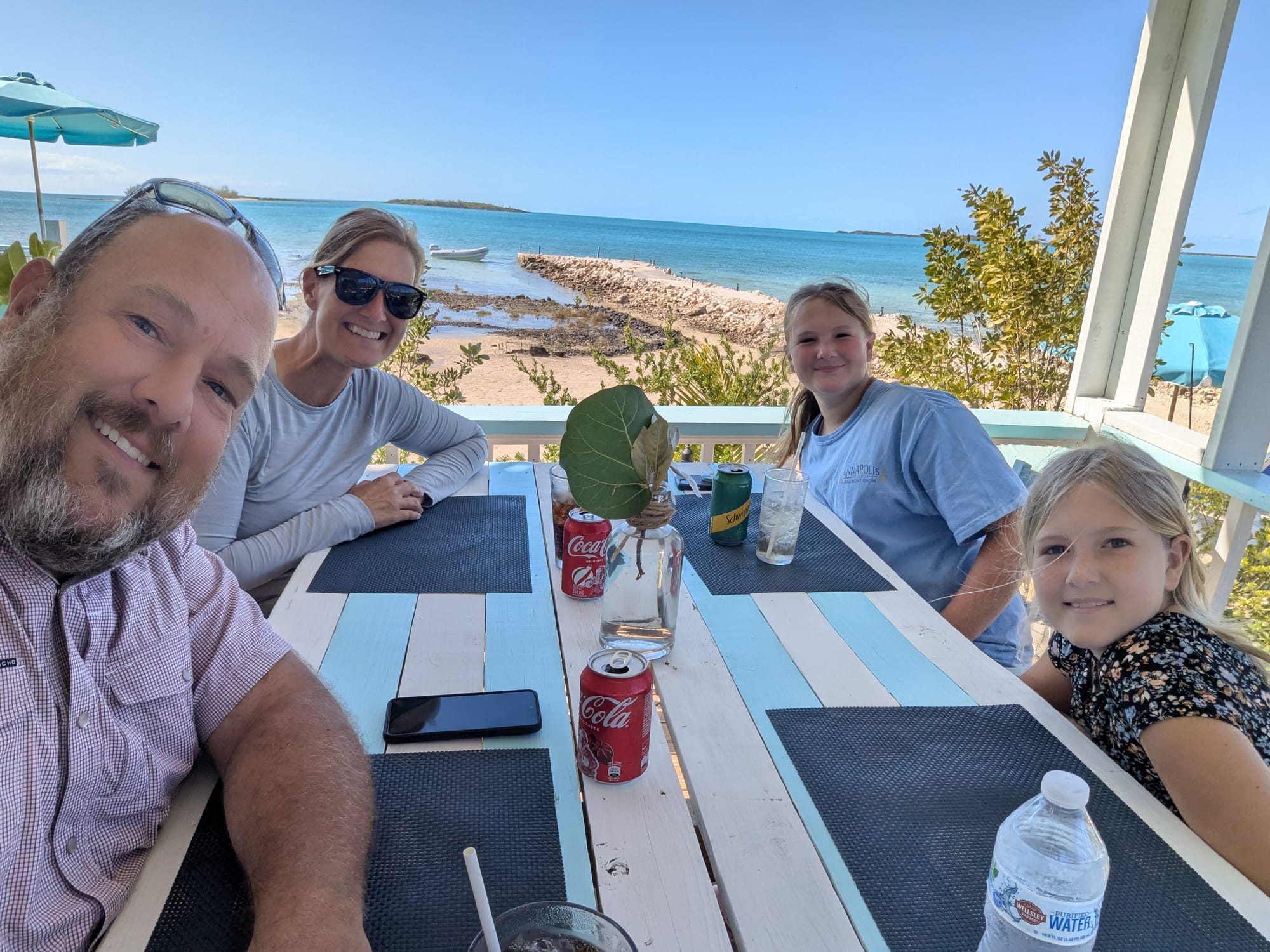 One of the stories we've always told the girls is in the Bahamas you can see starfish on the bottom right from the boat. Apparently Emma thought we were making that up until she saw it with her very own eyes. The water was so clear and shallow we could even see sand dollars on the bottom.