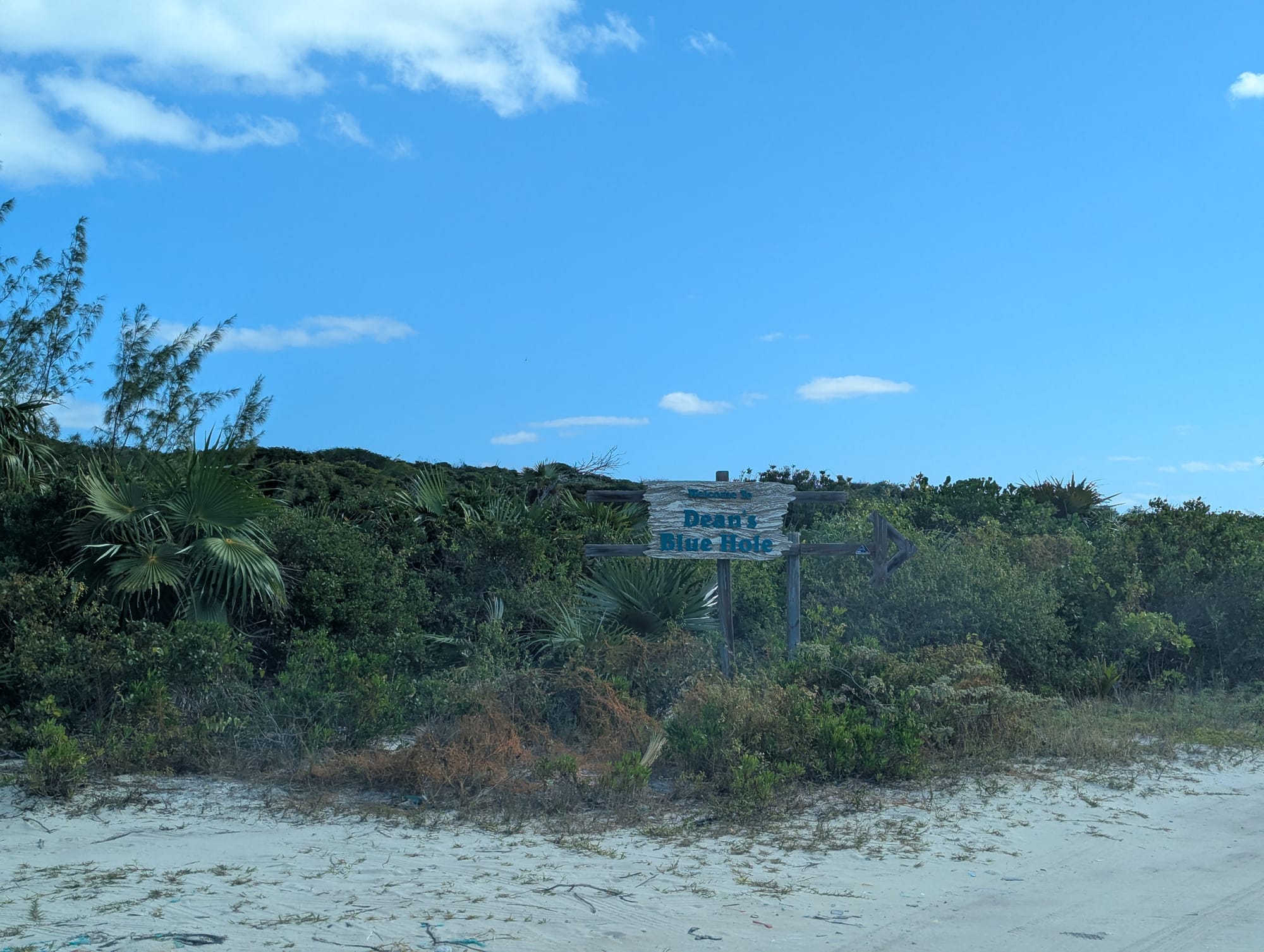 Long Island is... long - 80 miles from one end to the other. We rented a car for two days so we could check out more of the island. Our first stop was the famous Dean's Blue Hole. Dean's Blue Hole is the third deepest blue hole in world at 663 feet. The girls wasted no time getting in the water to check out a gigantic stingray.