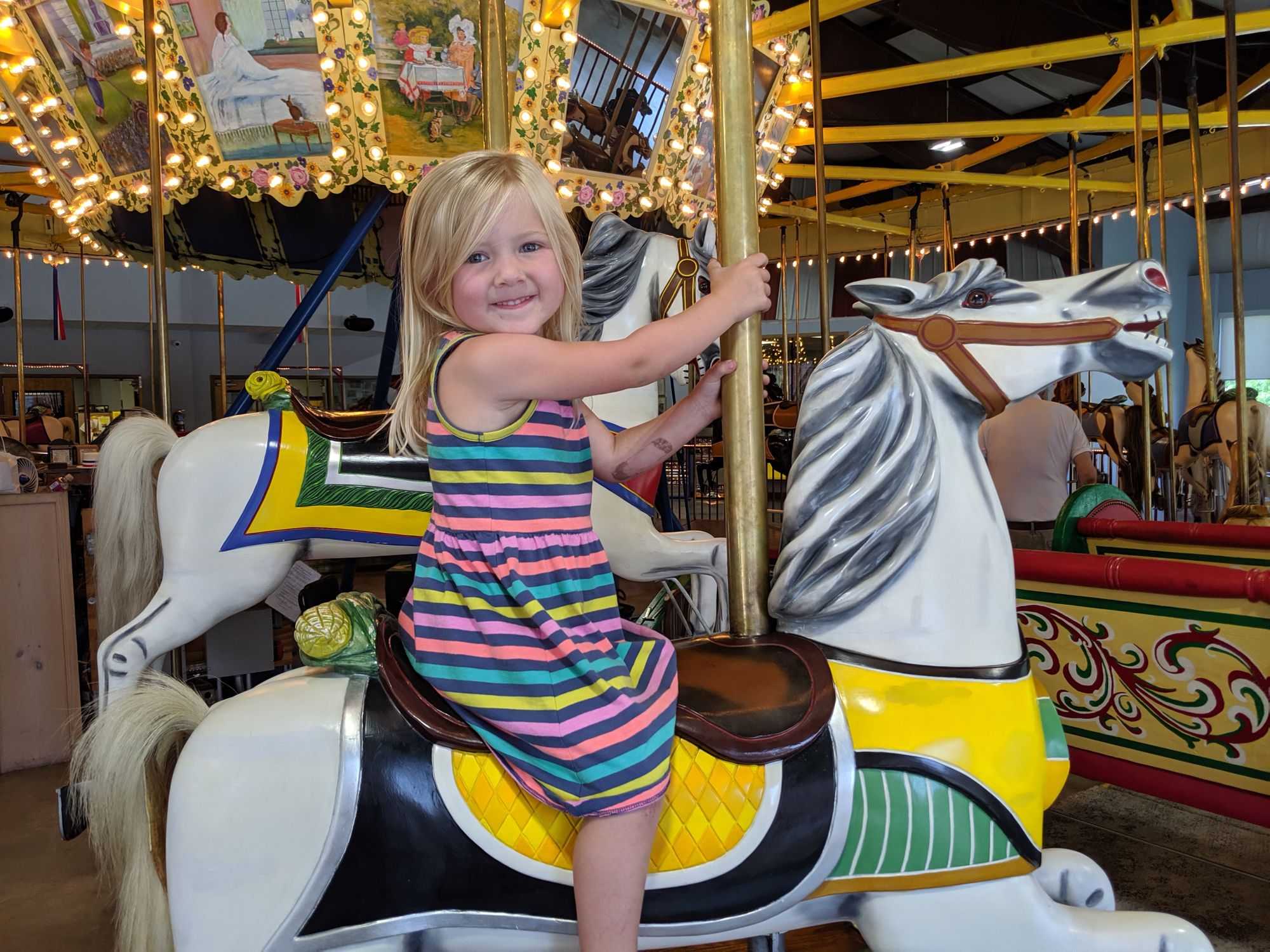 When we stopped at the Kansas Welcome Center yesterday I got a brochure for a carousel museum. It was 30 minutes out of our way, but the girls and I REALLY wanted to go.