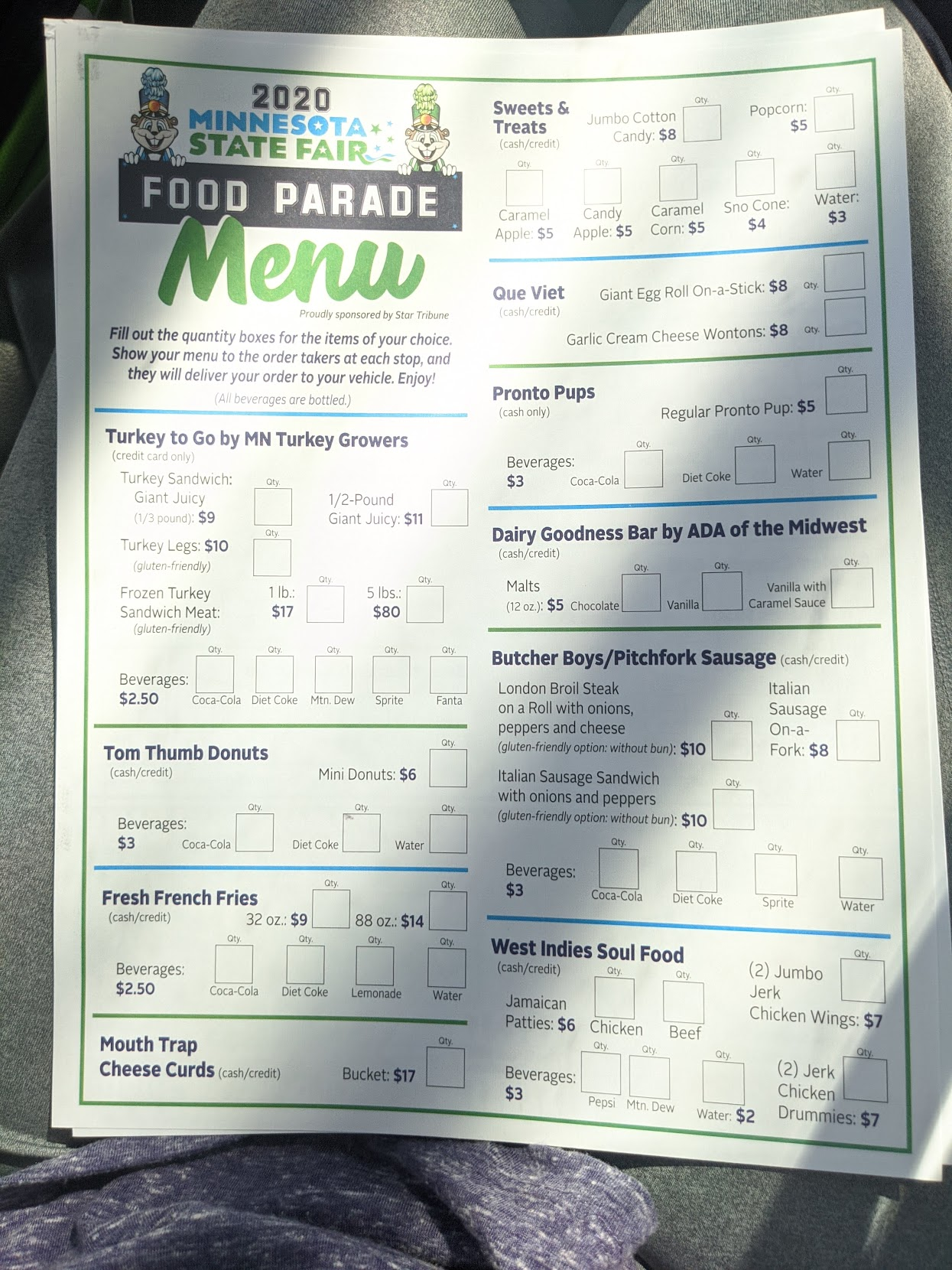 A couple months ago the MN State Fair announced they were going to do a food parade since there couldn't be a fair this year. It took me 45 minutes to buy tickets online the moment they went on sale. Luckily I got some, and in 2.5 hours they were completely sold out (19,000 tickets). We've been waiting a long time for MN fair food... and today was the day!