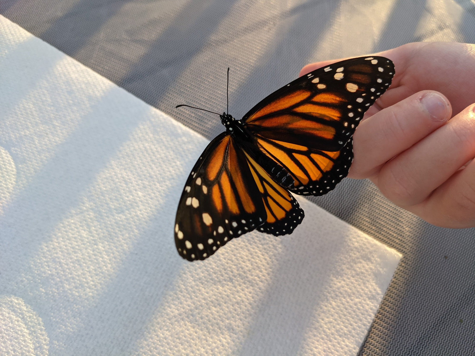 By the time we got back from the mall yesterday afternoon we had a butterfly.