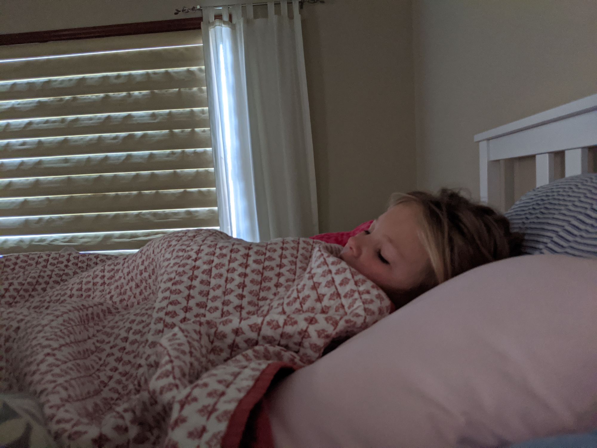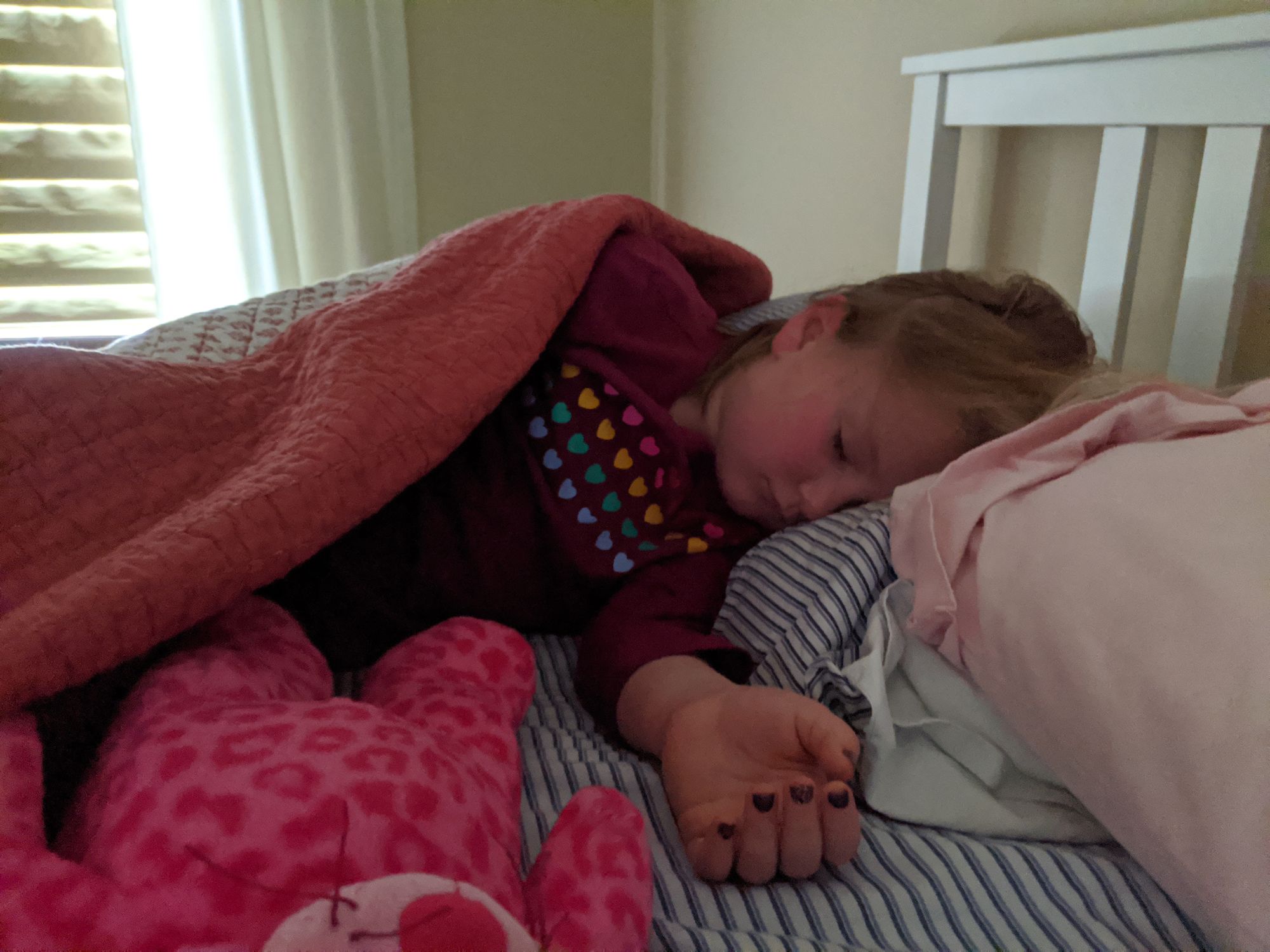 When the girls are sick I let them sleep in our bed so I can check on them at night, take their temperature and give them medicine.