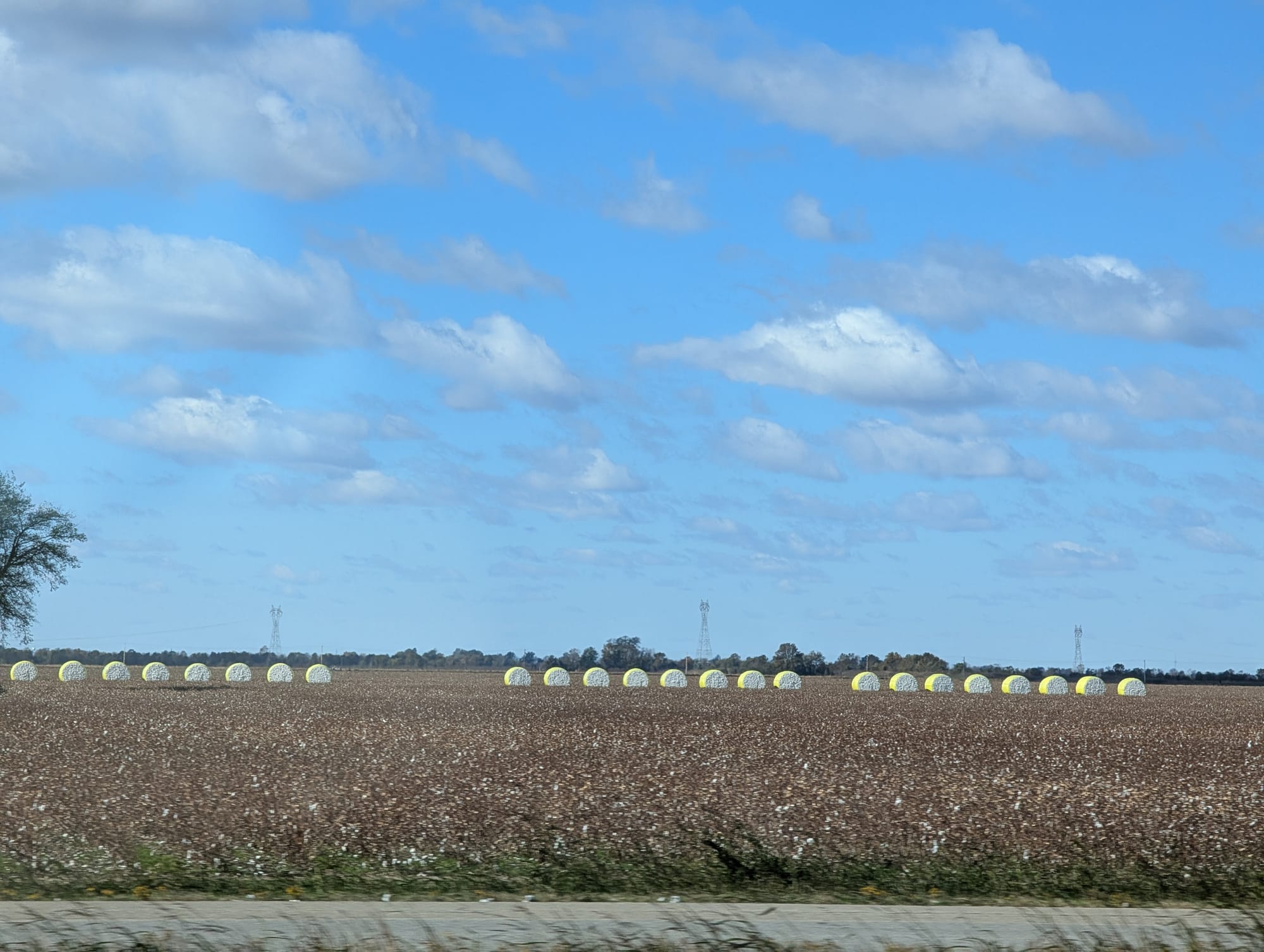 The first new state for all of us was Arkansas. We drove through miles and miles of cotton fields.
