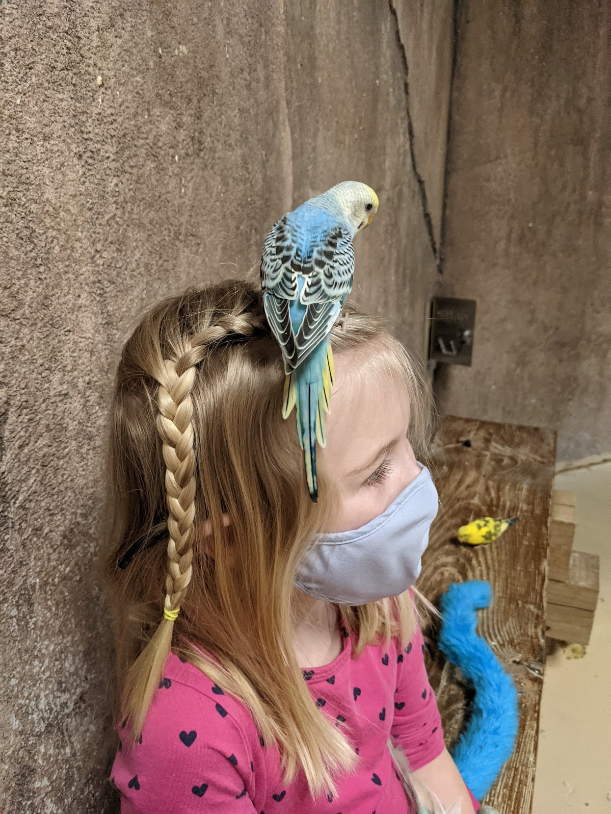 I don't know why... but animals always end up on Olivia's head (and in case you were wondering... yes, she is wearing a blue Pete the Cat tail).