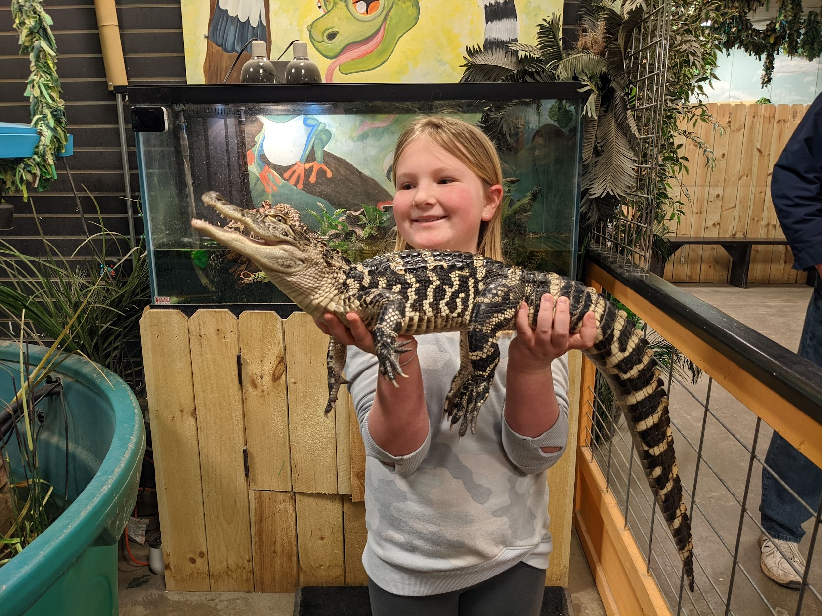 Last time we went the girls both held a fox. This time they both held an alligator.