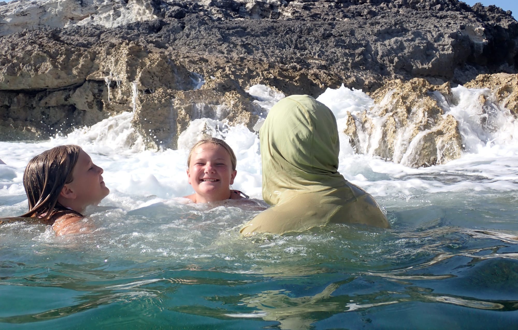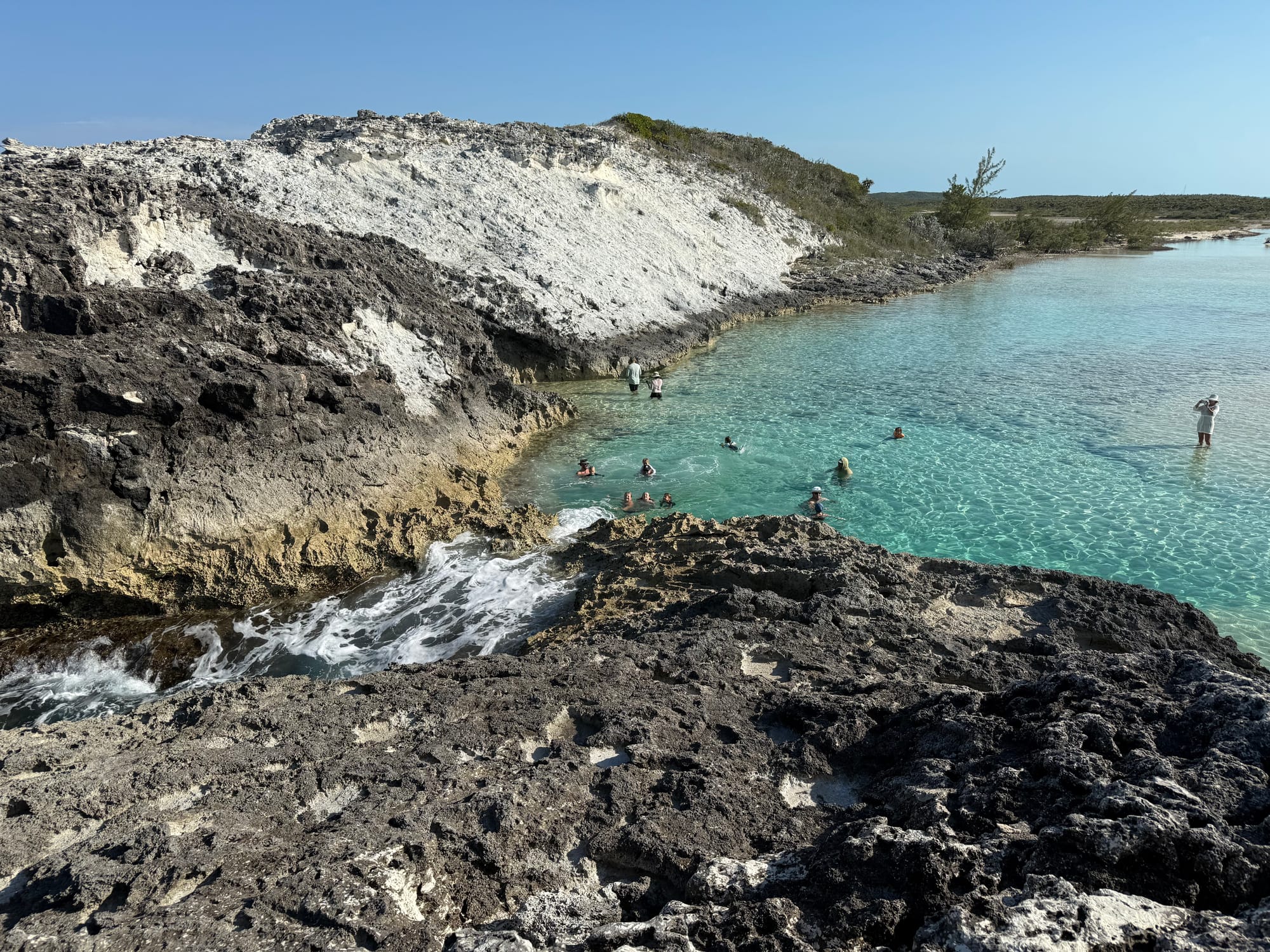 Our next place to visit in Compass Cay was Rachel's Bubble Bath. The bubble bath is a lagoon that is separated from the ocean by a low rock wall. When the waves crash in they make bubbles in the lagoon.