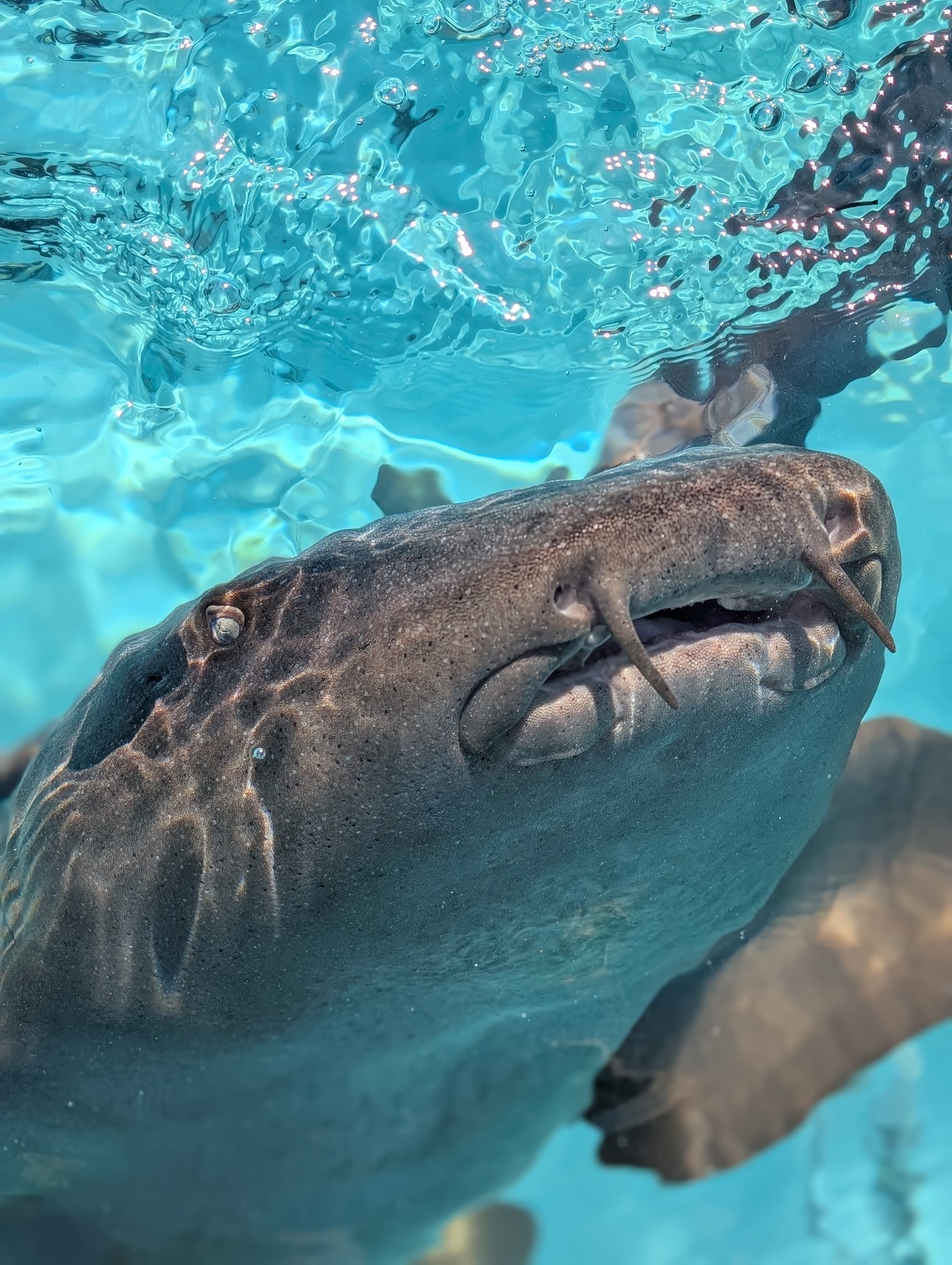 Emma has been waiting months for this stop. Compass Cay has a resort and marina where you can get in the water with the nurse sharks. Swimming with sharks has been the thing she was most excited about doing in the Bahamas.