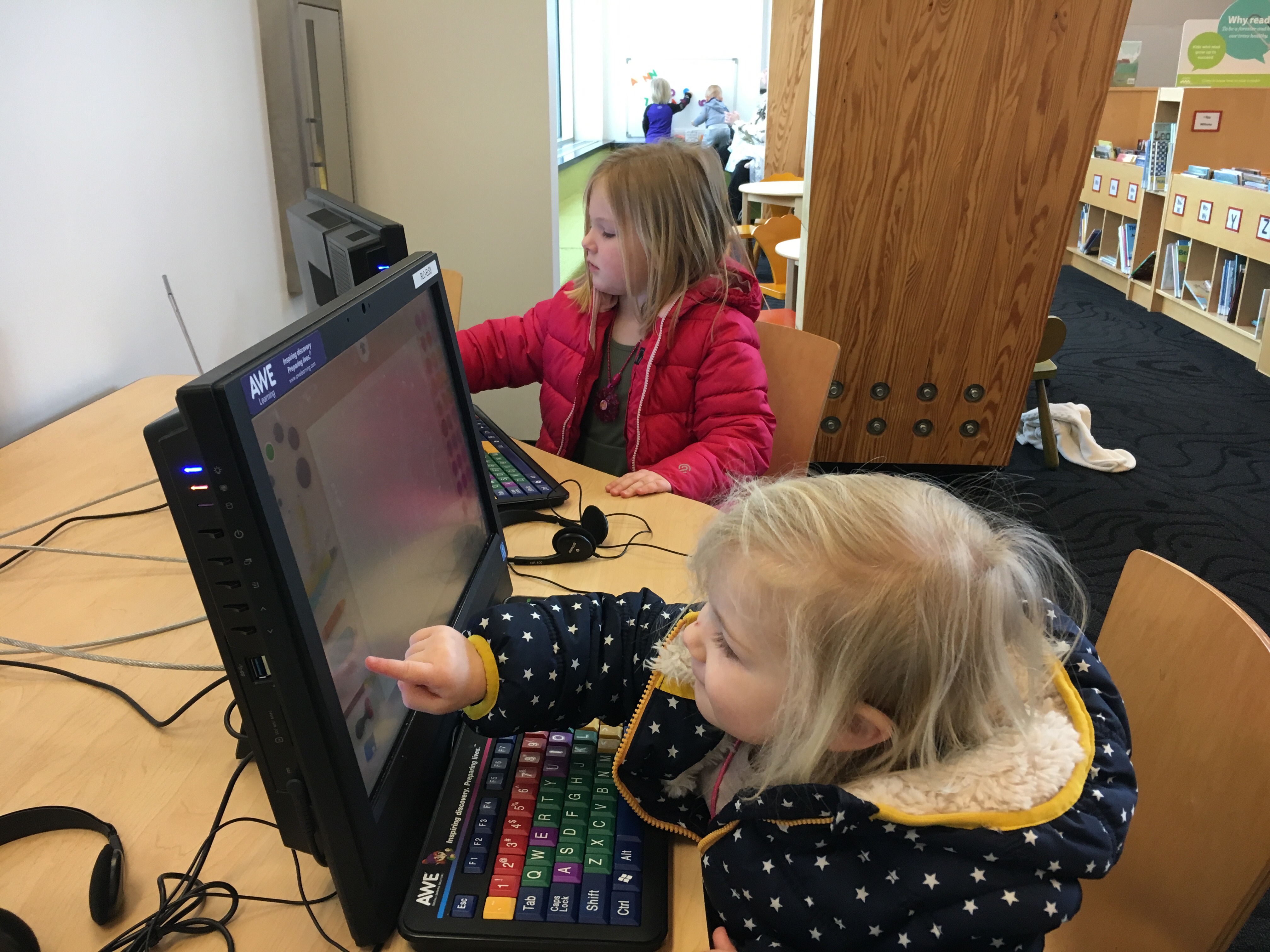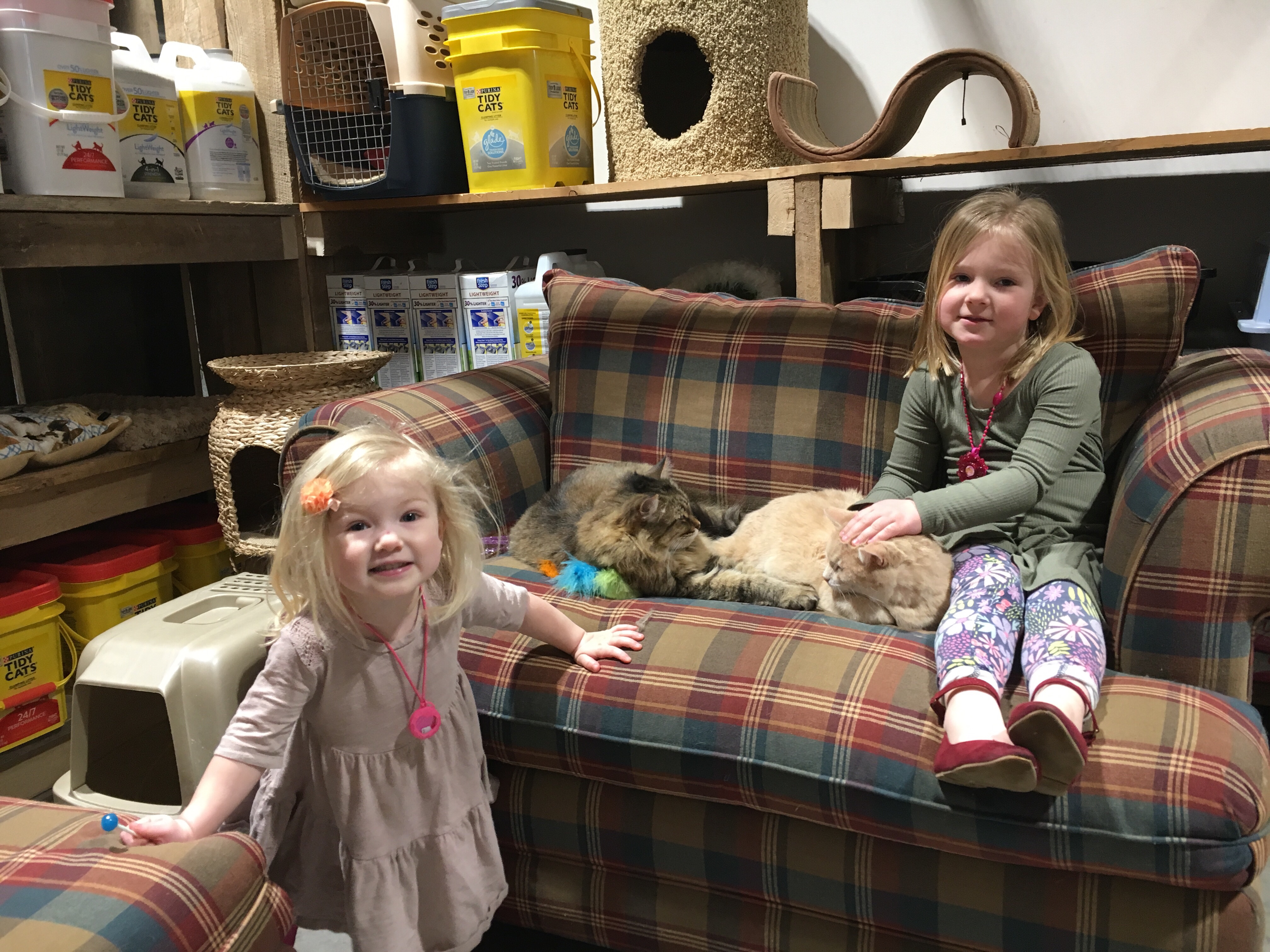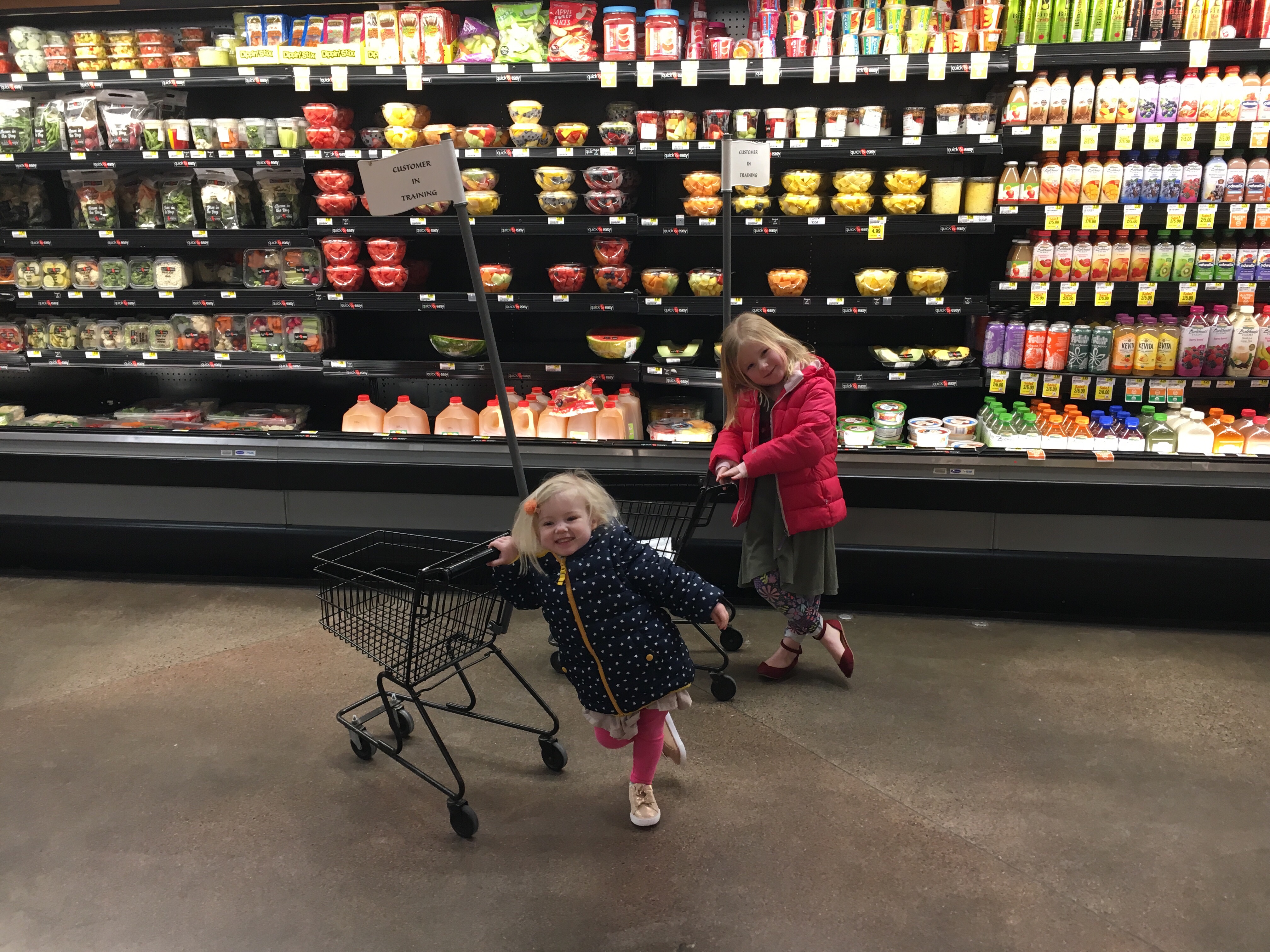 Olivia’s school was cancelled today because we were forecast to get 8″ of snow. Instead of Emma’s morning out we went to the grocery store, the cat store and the library.