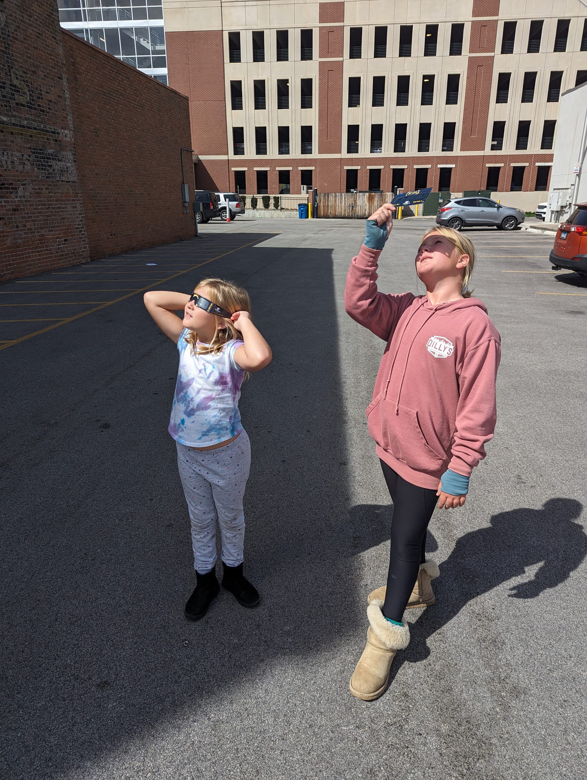 We picked Terre Haute, IN. Not a cloud in the sky. The girls were basically seeing the eclipse for the first time since they were 4 and 2 in 2017.