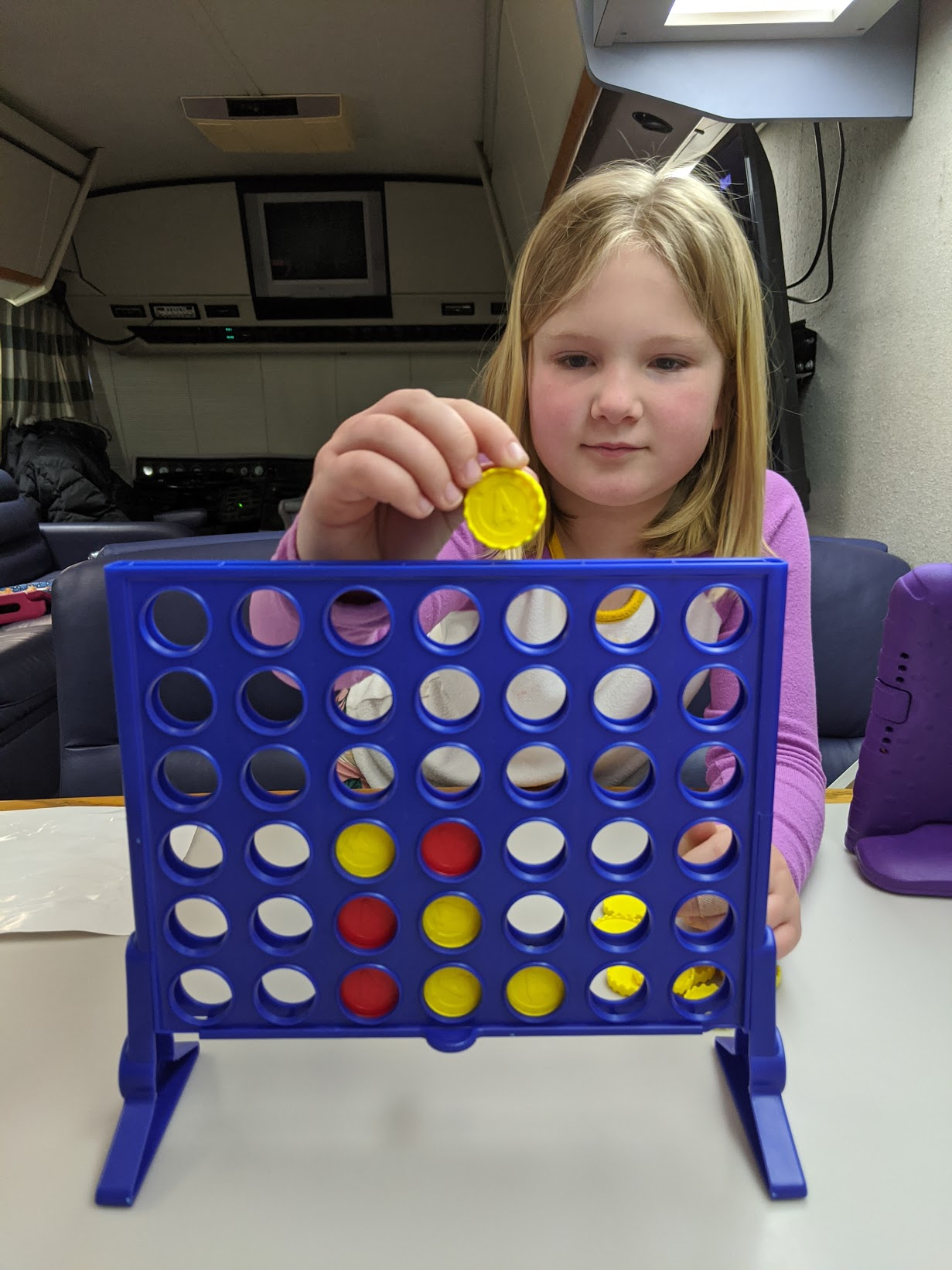 Today it rained... all day. Luckily I knew it was coming, so when we went home yesterday I grabbed a bunch of activities to keep us busy since I knew we'd be stuck in the bus all day. We played a lot of games.