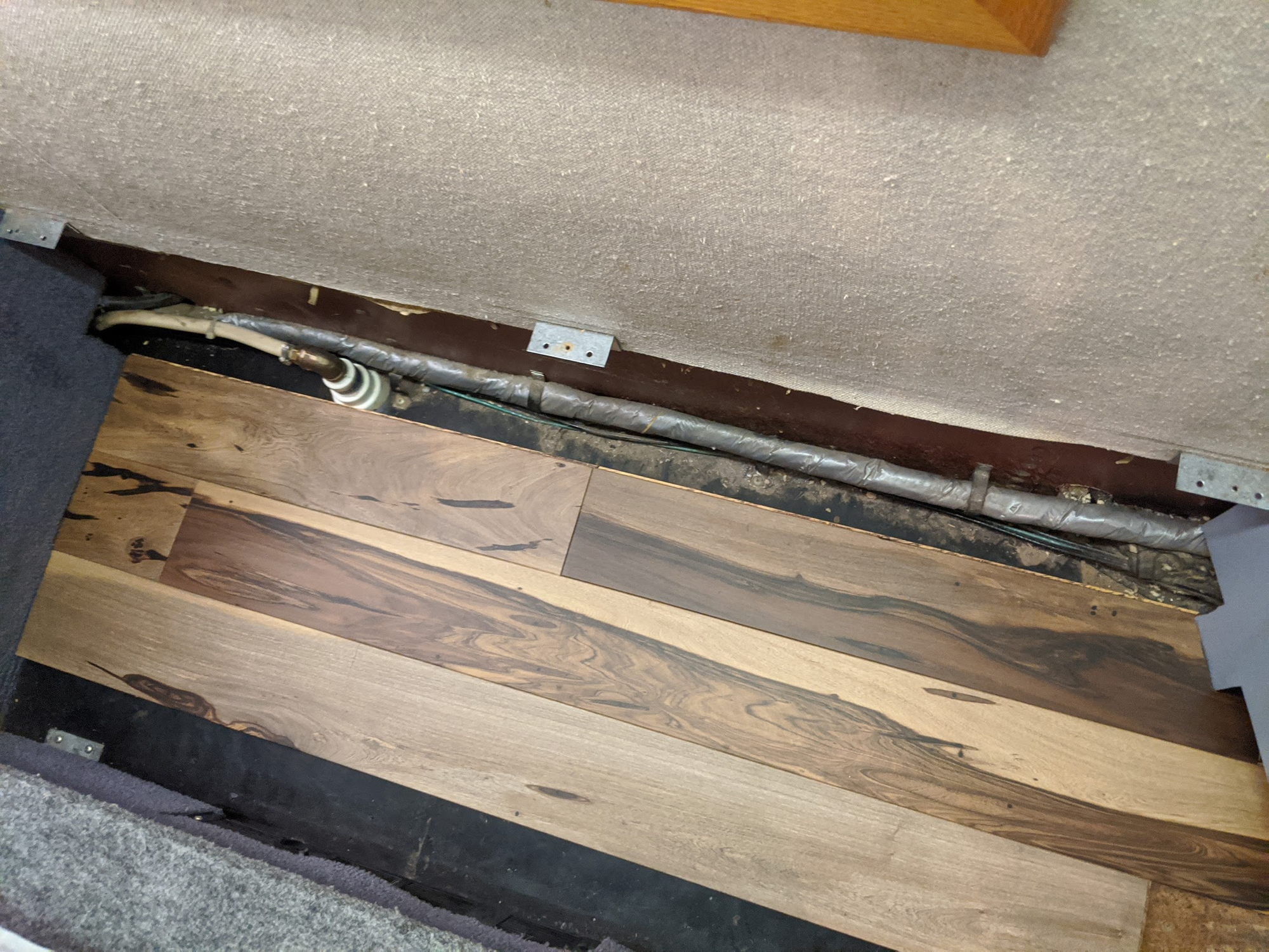 Braden and I got to work on our next big bus project... new floors in the bedroom. We had to rip the carpet up when we first bought the bus because of a water leak. We've had bare floors for almost 4 years, so I'm excited to finally get actual flooring back.