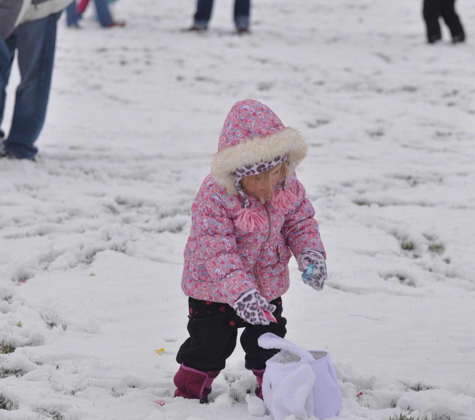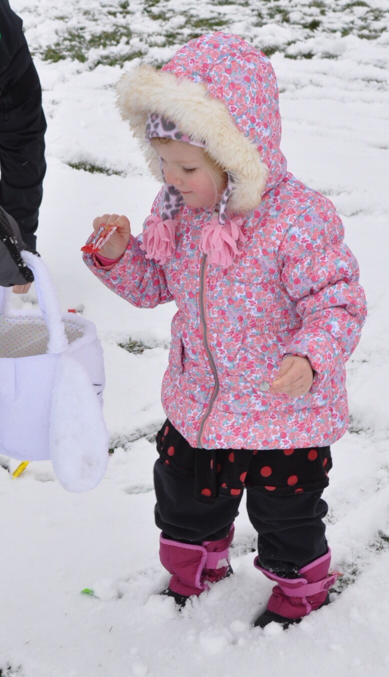 The spring egg hunt was on Saturday. Of course all the snow has been melted for weeks… and then it snowed all Friday night. Just in t