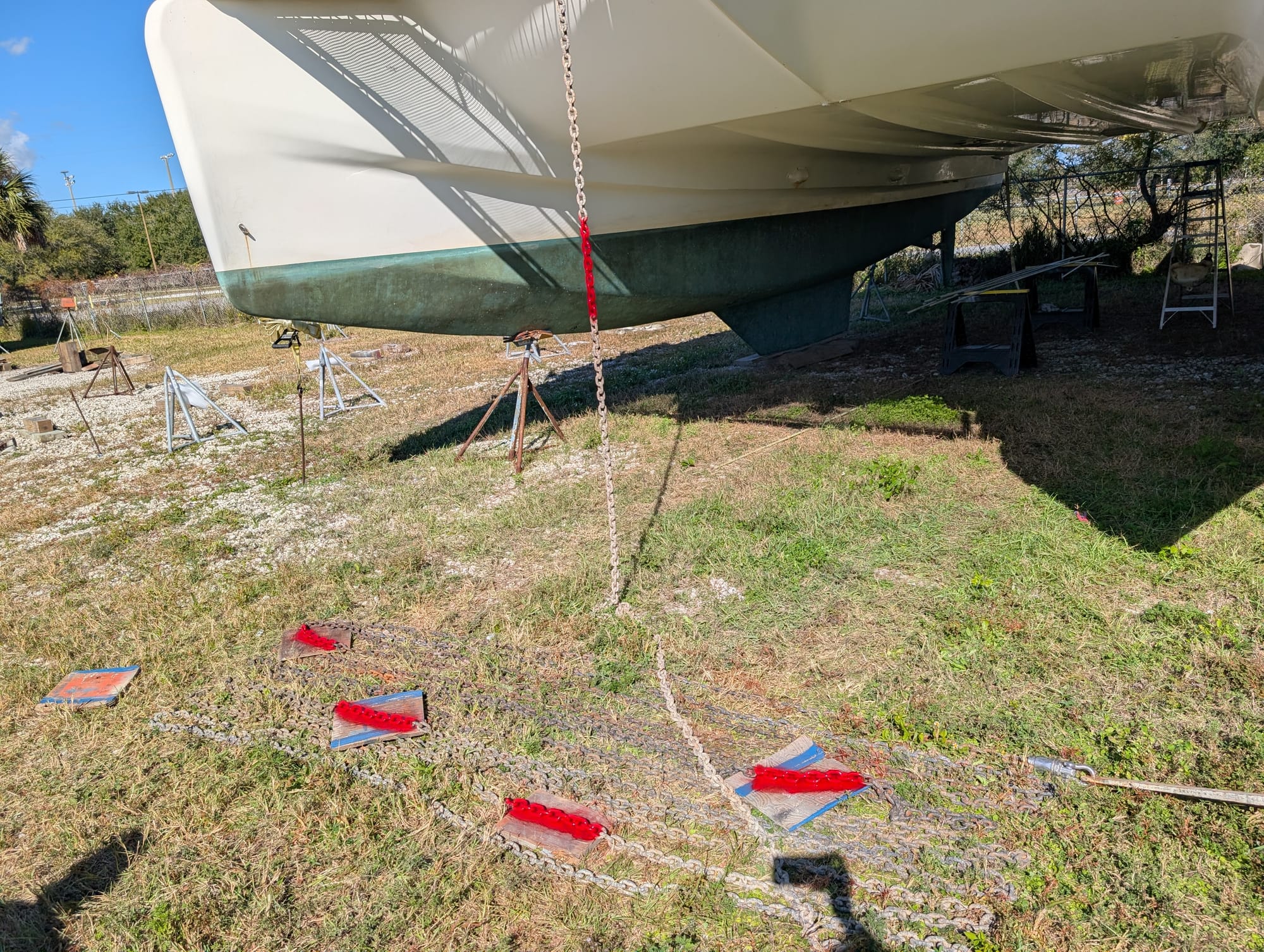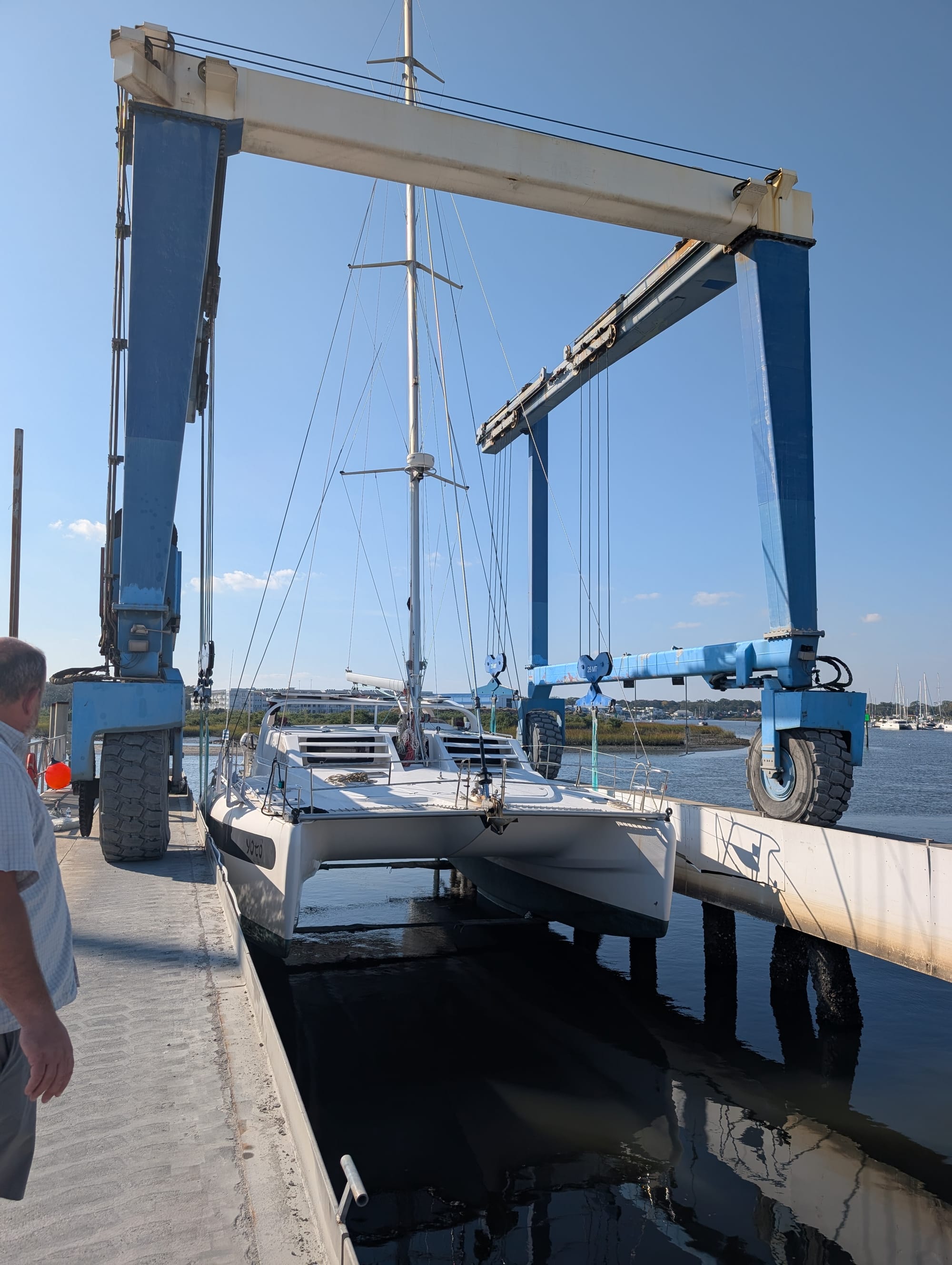 Putting the boat back into the water always make me nervous. It's a long, slow drive through the boatyard with the boat swinging all over the place.