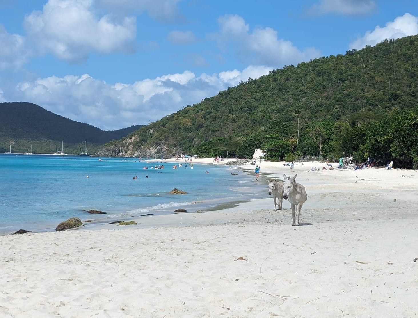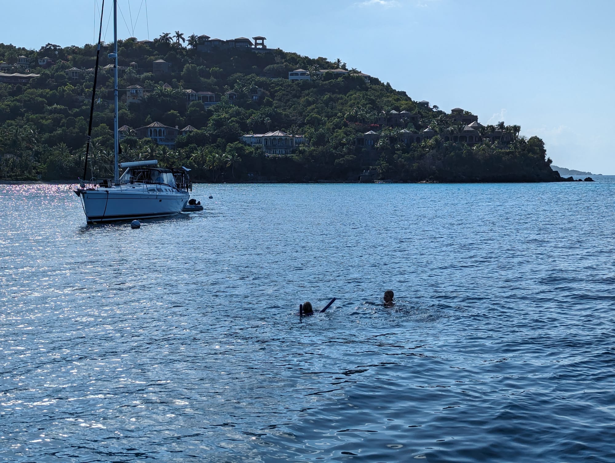 We're not done with the USVI just yet- this time it was back to St. John. We had quite the group of friend boats along for this trip around the island. I love when the girls can jump off the back of the boat and swim over to their friends boats.