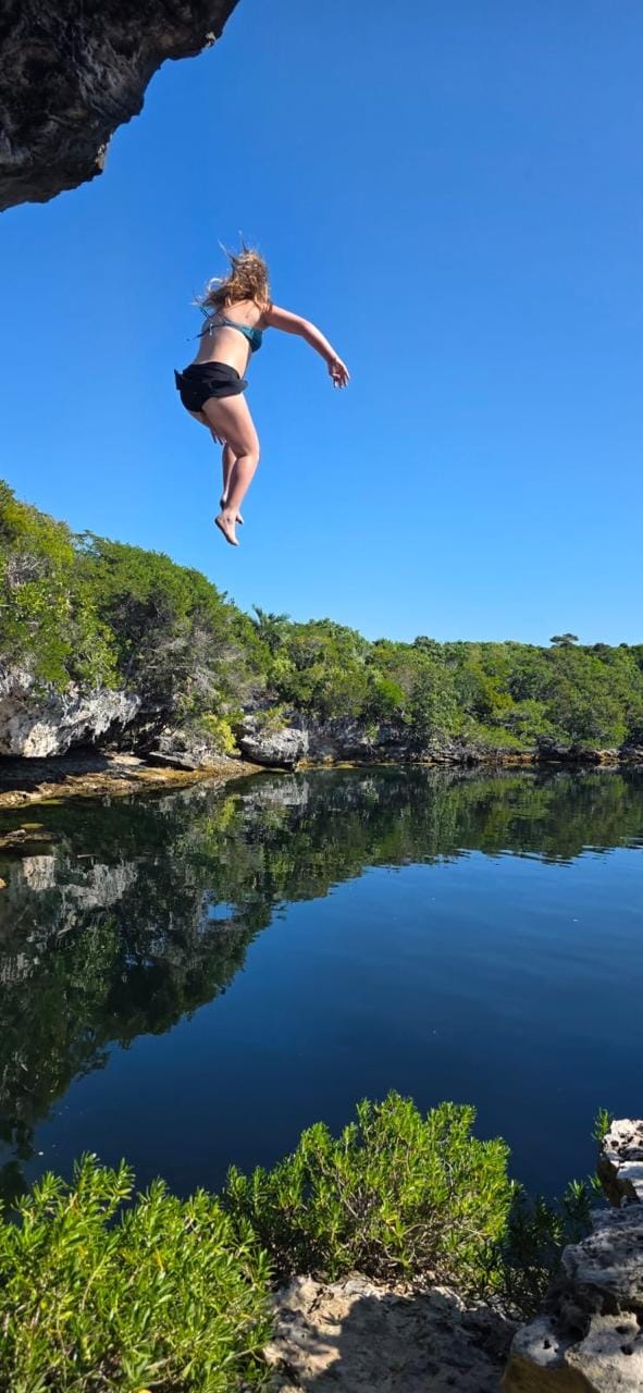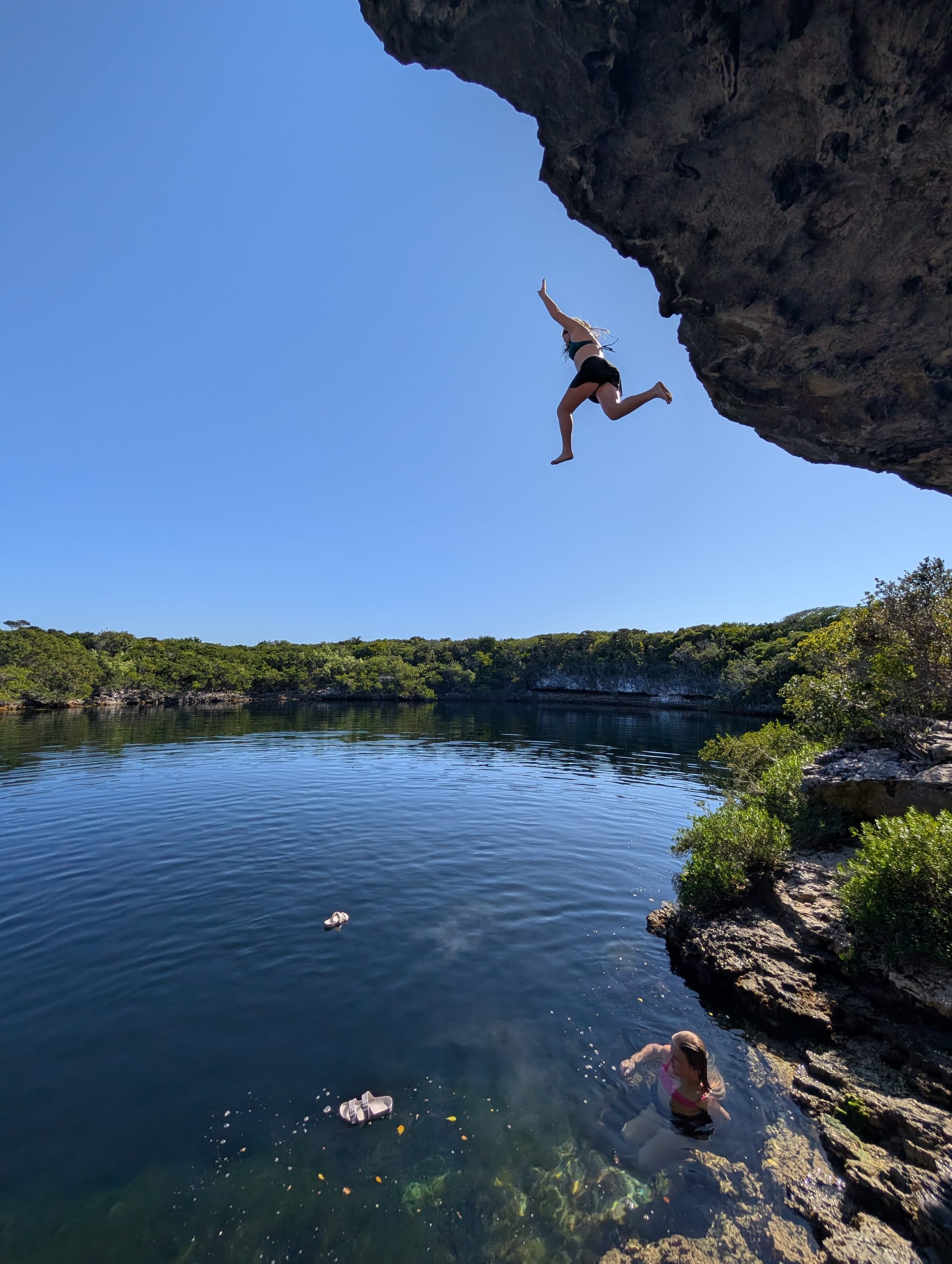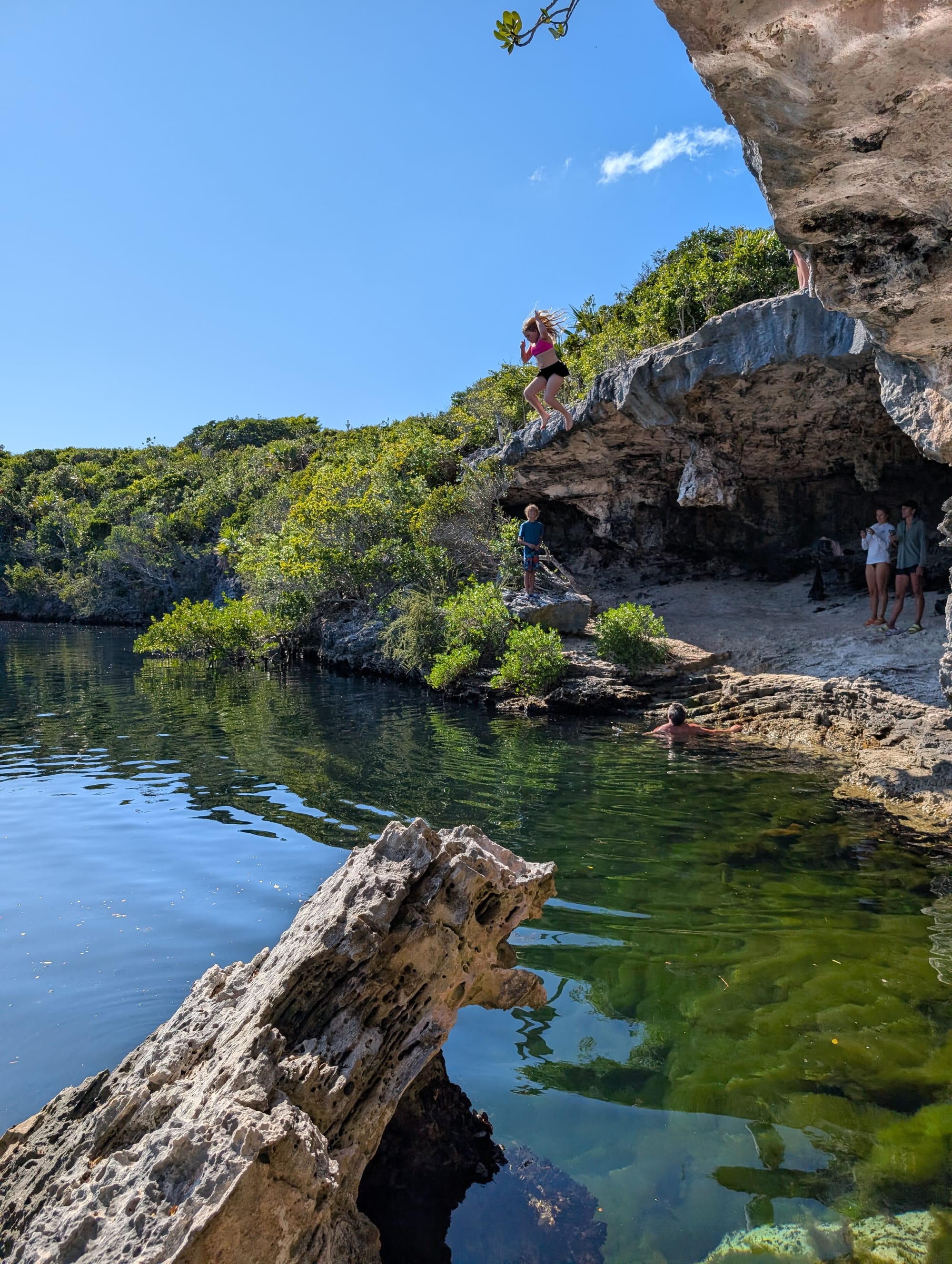 Really the only attraction here is Hoffman's Blue Hole. We've only been to one other blue hole - Dean's Blue Hole in Long Island, Bahamas. That was where we discovered Olivia's allergy to cold and had to rush her to the hospital (recap here in case you missed it). Since then any time a blue hole was mentioned in conversation Olivia would start crying. We all needed to overcome our fear of blue holes, so we agreed to just go and look at this one. Just looking at it turned into jumping off the cliff into it - and just like that fears were overcome.