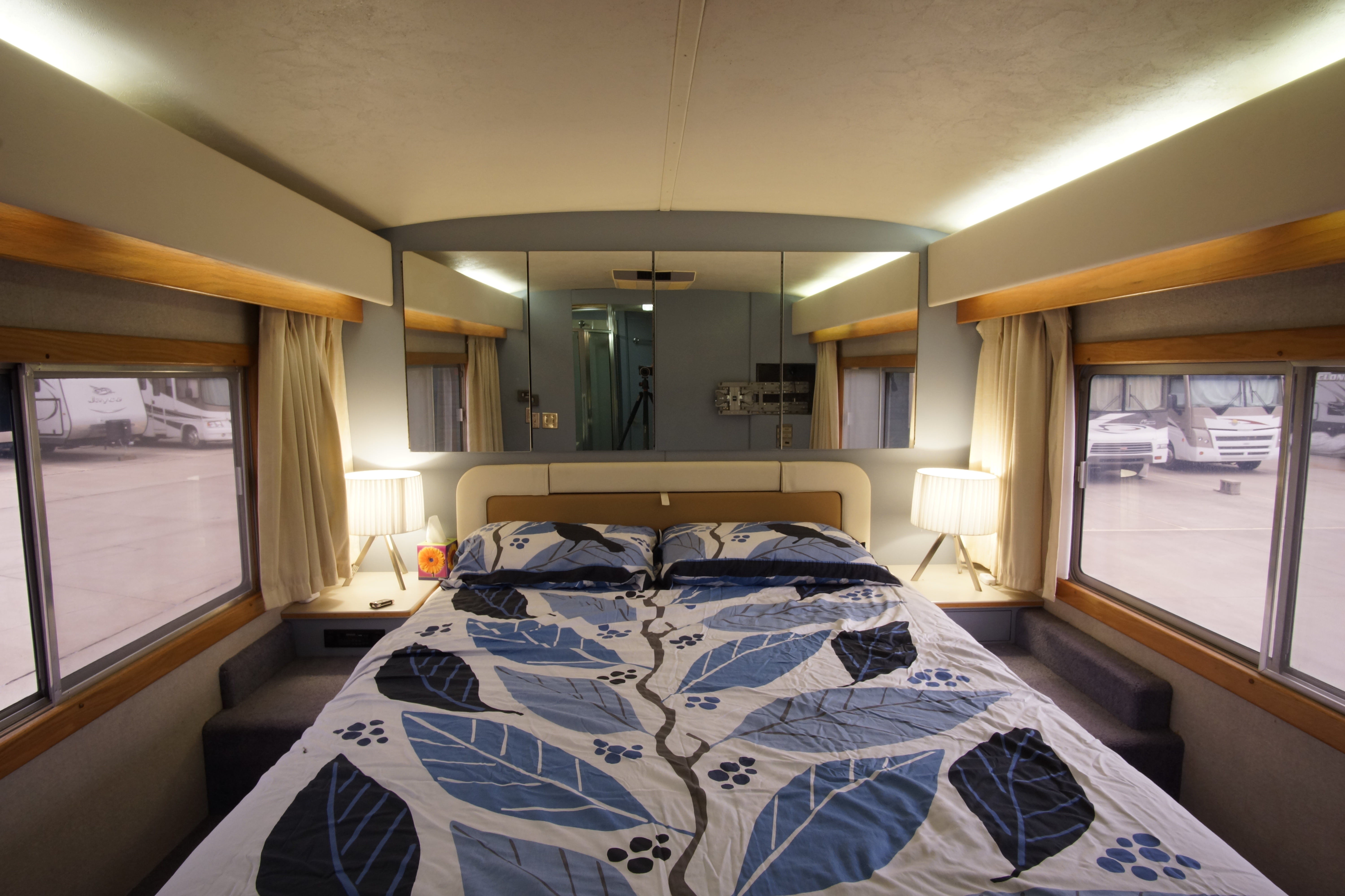 So…. here it is ( minus the family picture ). It was made by Bluebird, who makes school buses… so technically its a bus. We are constantly calling it “the boat “. Old habits.