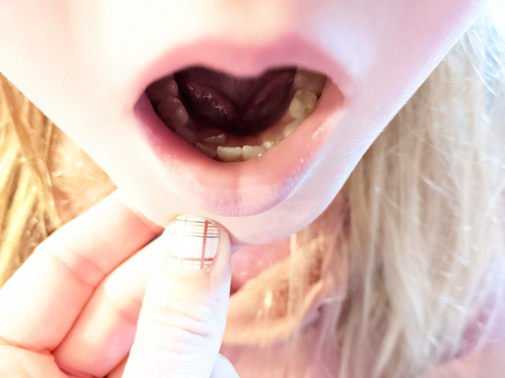 Every one of Emma's adult bottom teeth have come in behind her baby tooth. This one was no different. Usually it doesn't take long for her tooth to get loose once the new tooth starts coming in, but this one is all the way in and her tooth still wasn't very loose. She's been working on this one since November.