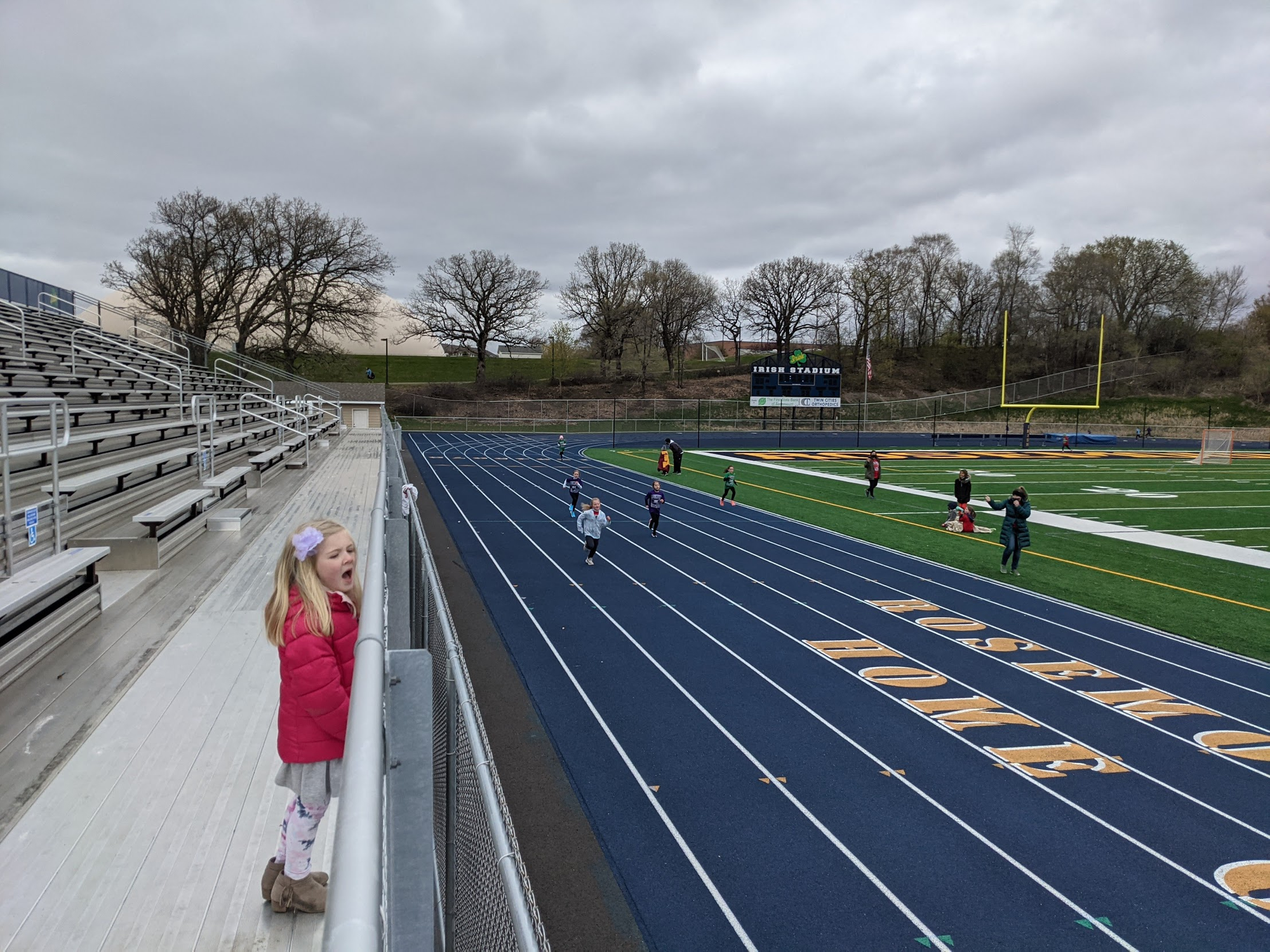Last year track got cancelled. This year it is back on... and both Emma and Olivia are doing it. Today was Emma's first meet.