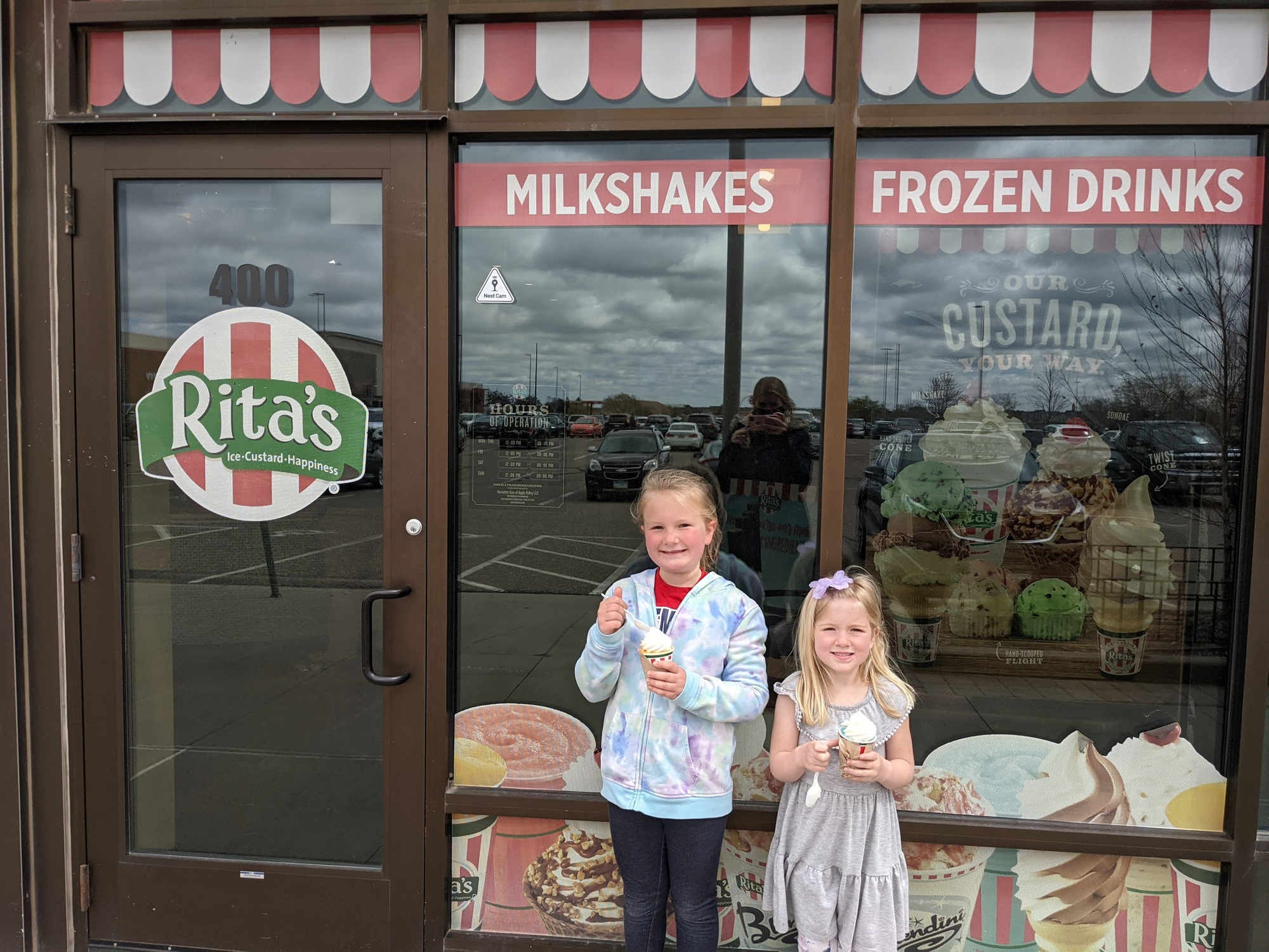 Afterward we celebrated the first track meet of the season with the first gelati of the season.