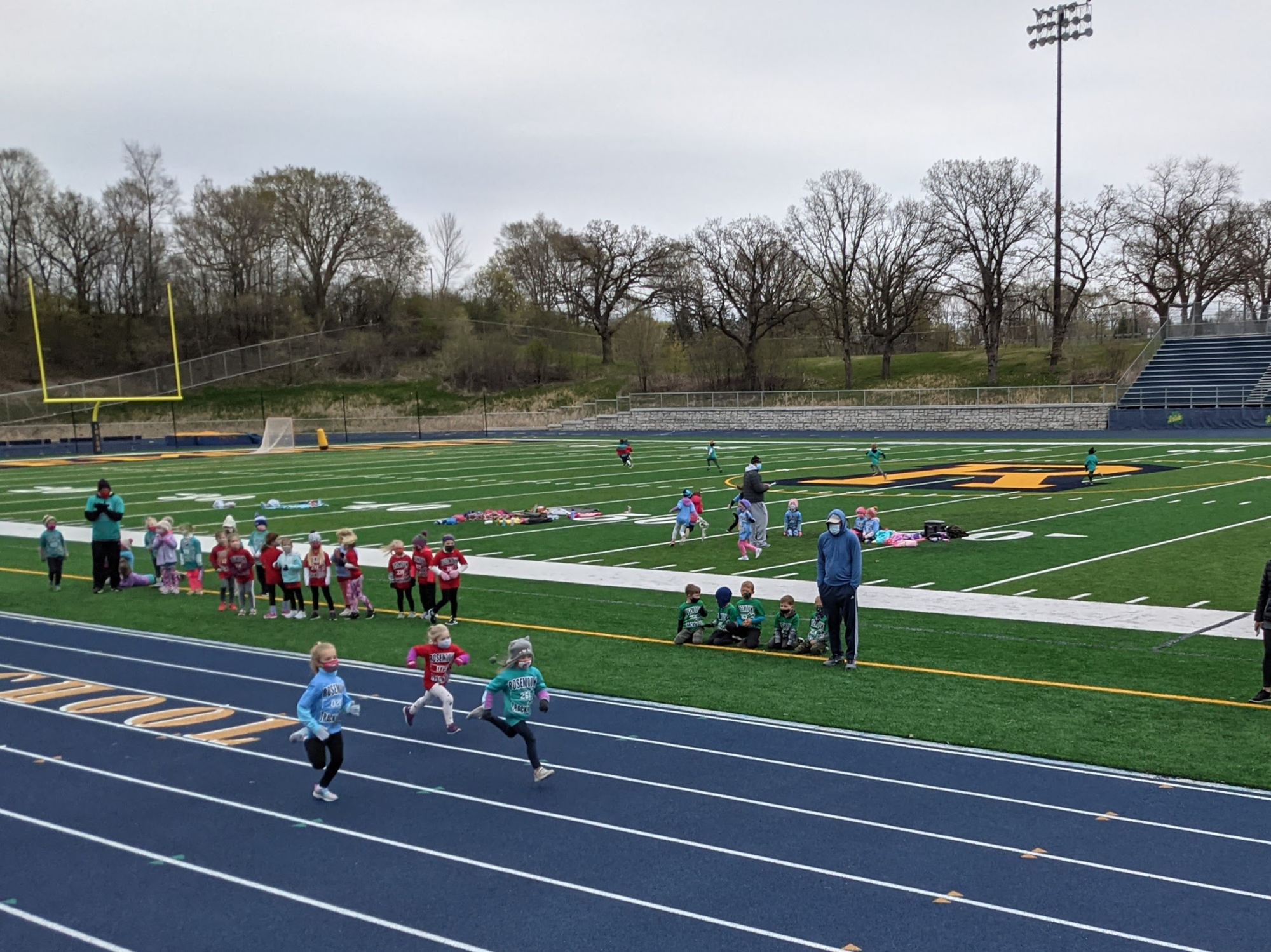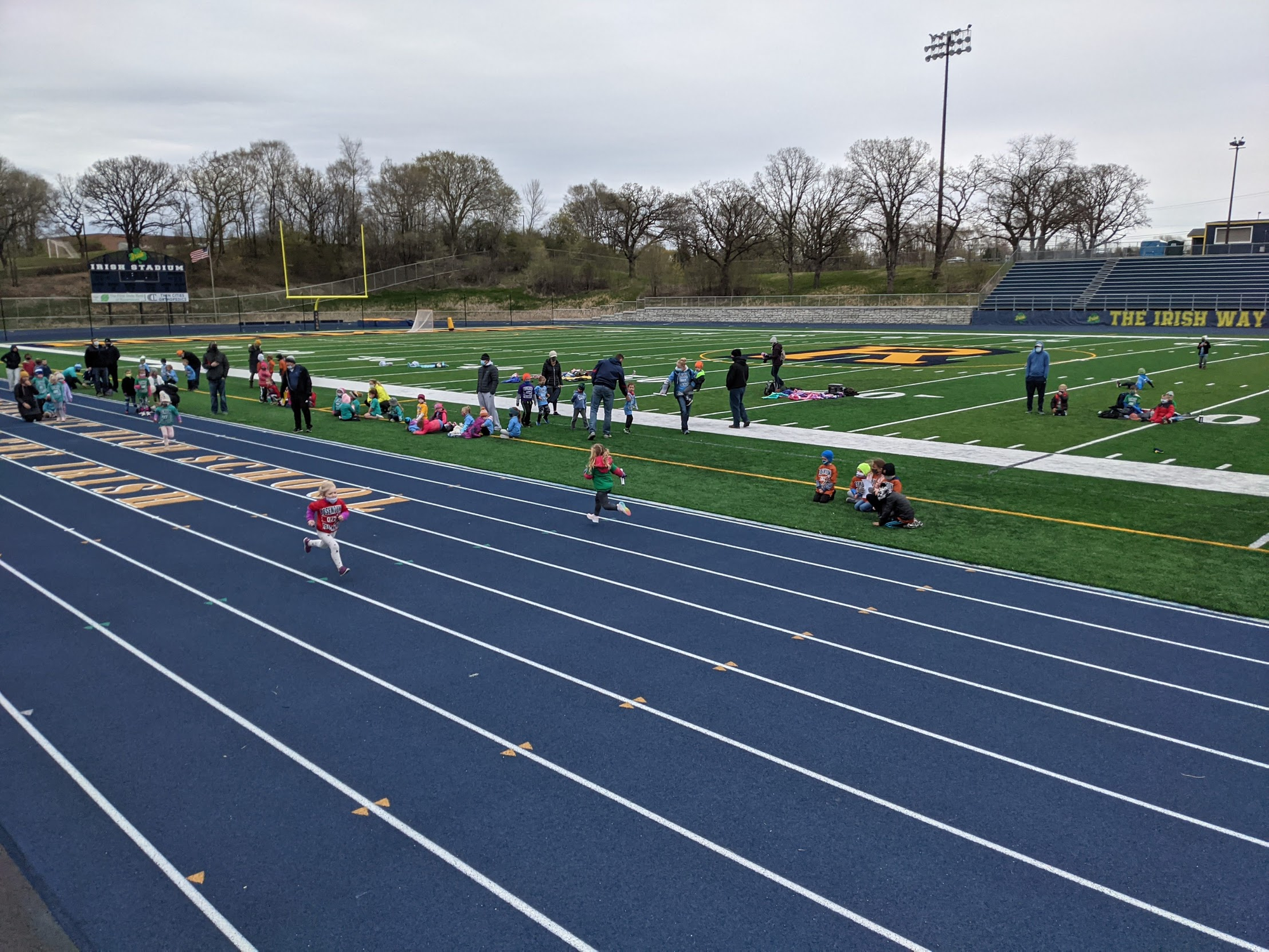 I forgot how much fun it is watching the Pre-K/Kindergarten track meets. You've got the kids losing their shoes mid stride. The kids stopping on the track to wave to the fans. The kids alternating skipping with running during their race. None of that happens by the time they get to be Emma's age.