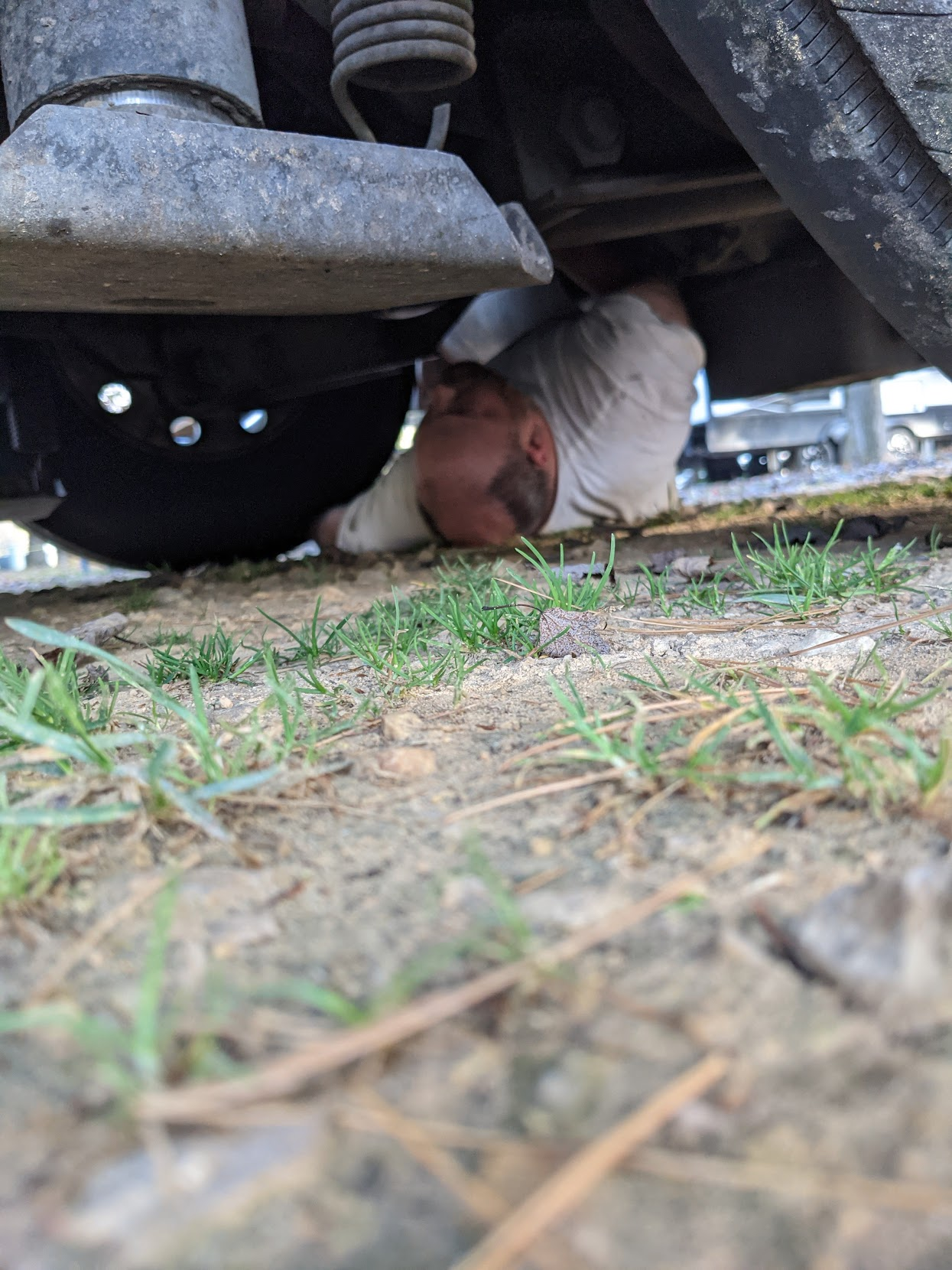 Armed with some new tools, Braden got to work under the bus the next morning.